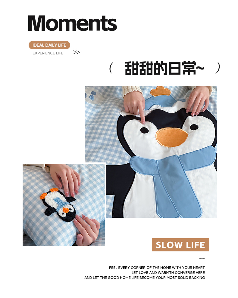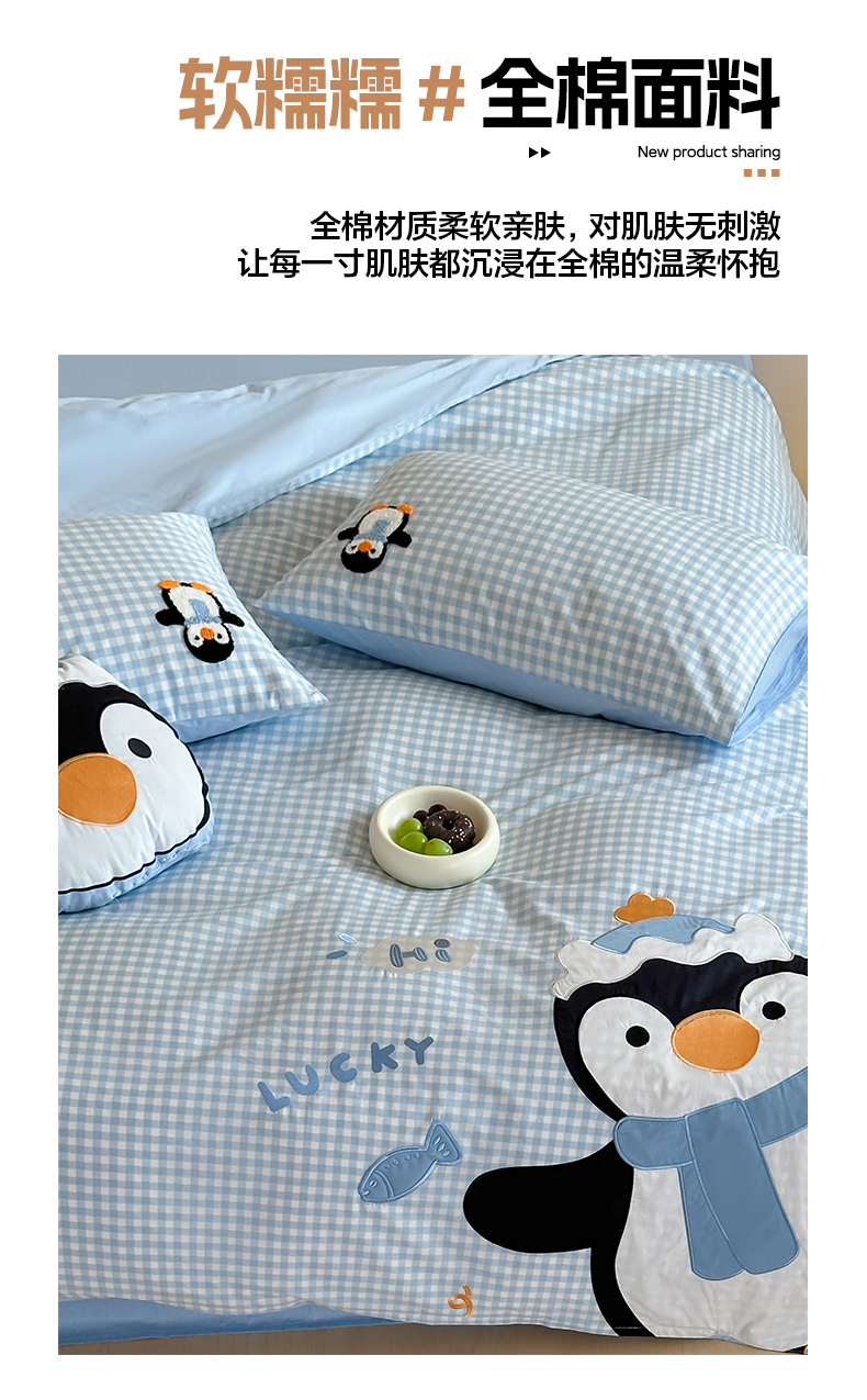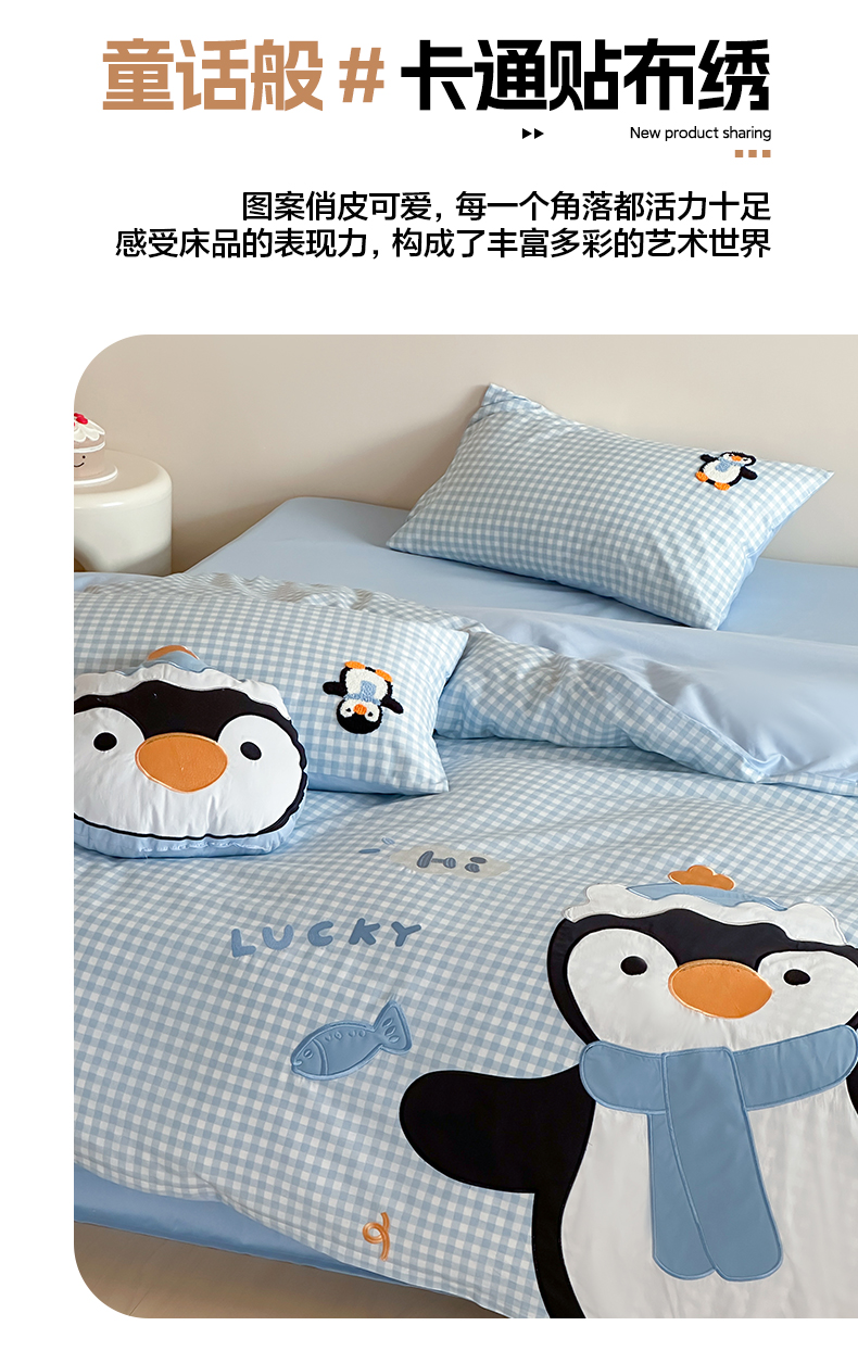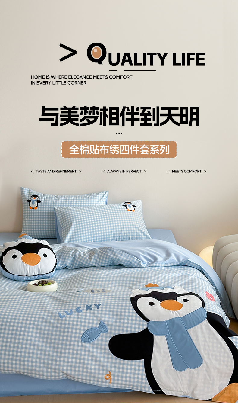 商品名称:卡巴伦家纺 2025新款全棉卡通贴布绣四件套【全网控价(折后券后)不低于标准248元】 呆萌企鹅