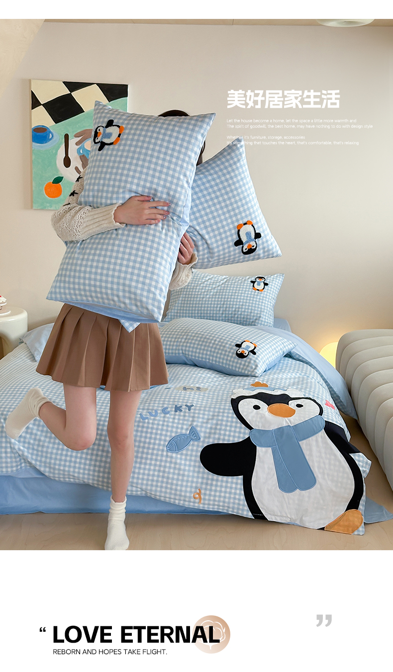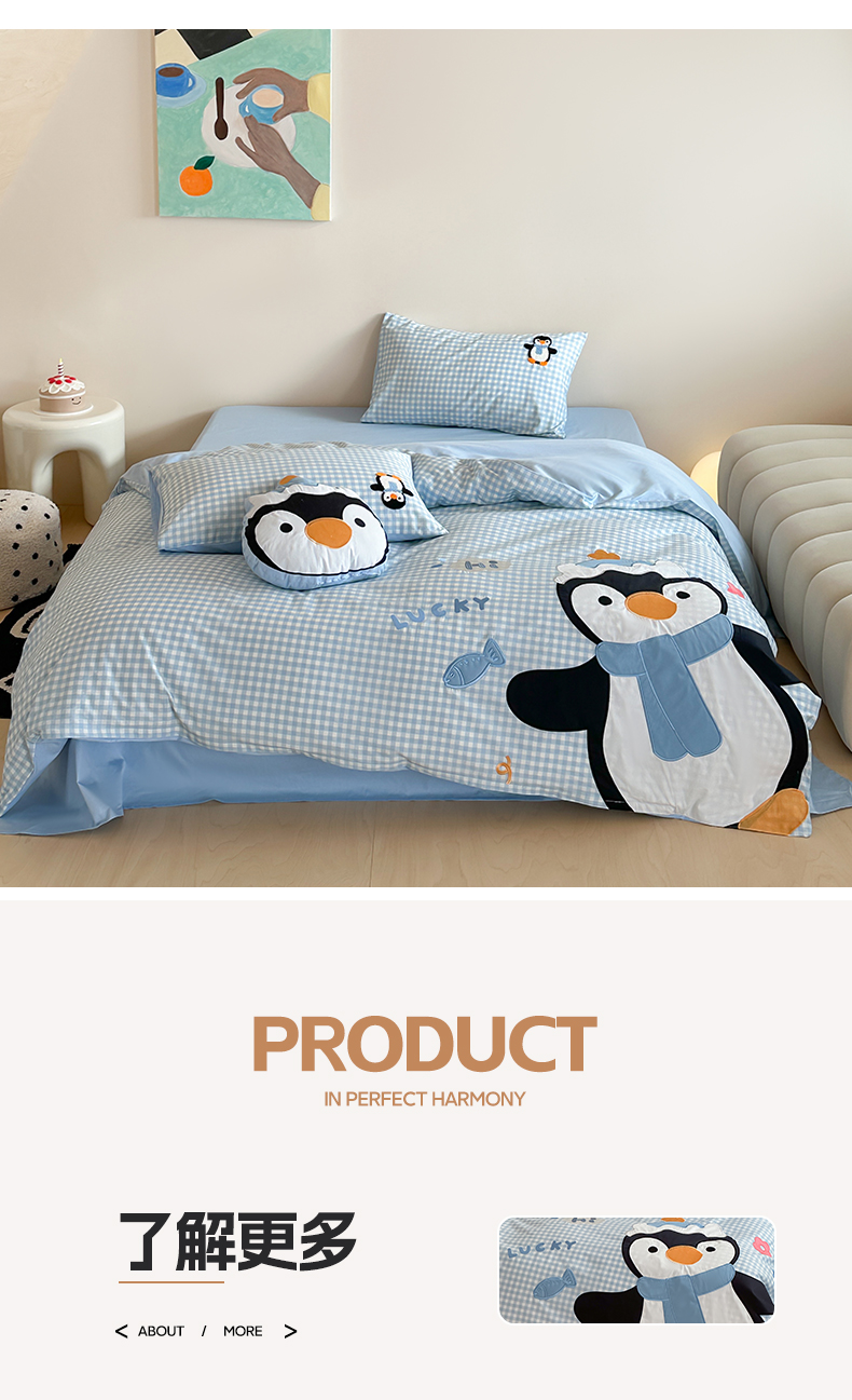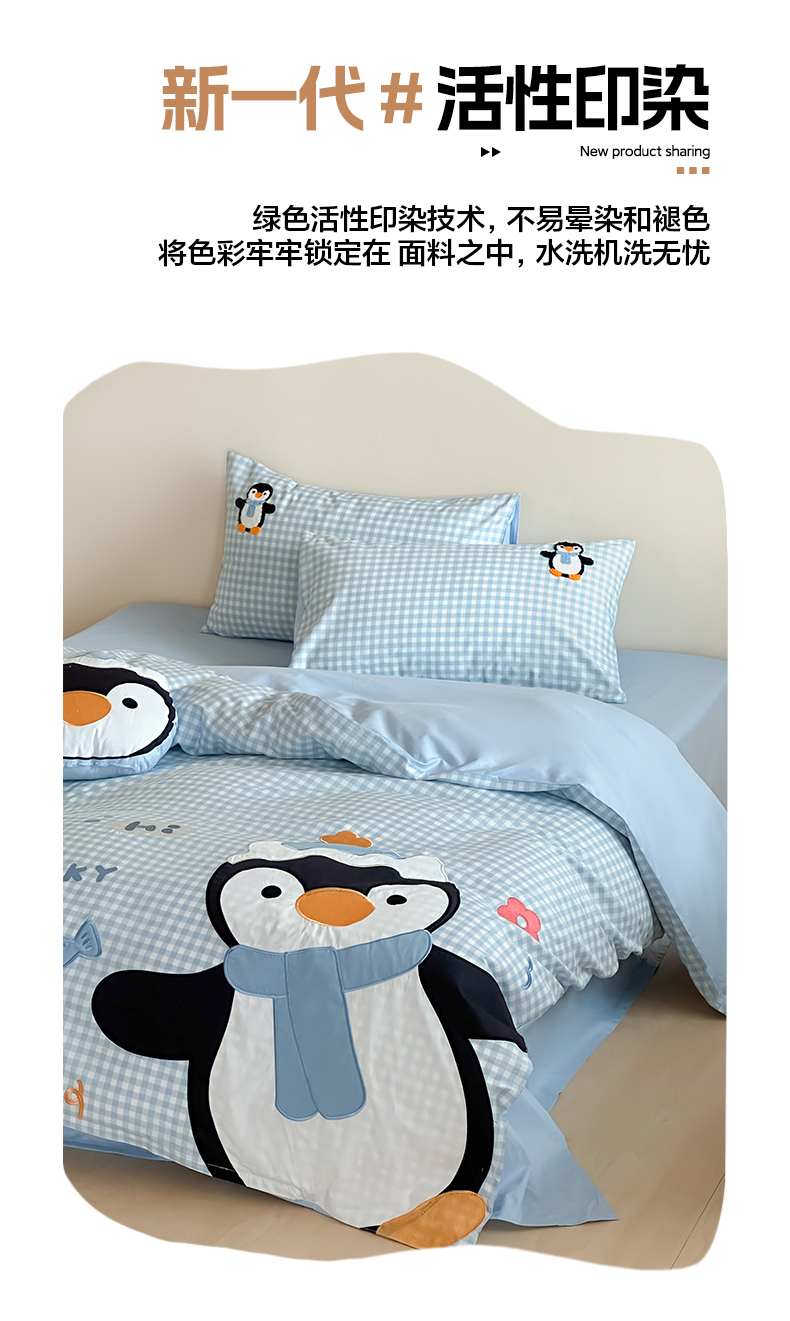 商品名称:卡巴伦家纺 2025新款全棉卡通贴布绣四件套【全网控价(折后券后)不低于标准248元】 呆萌企鹅