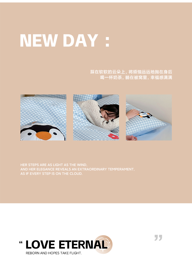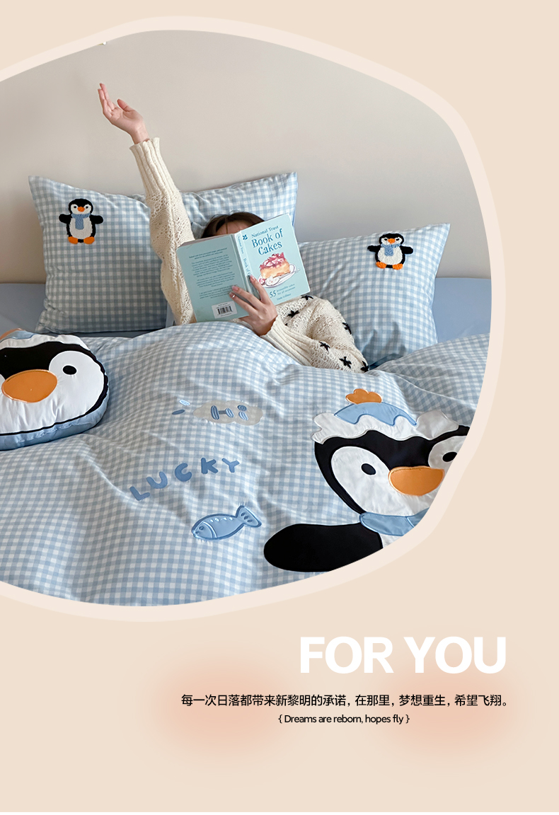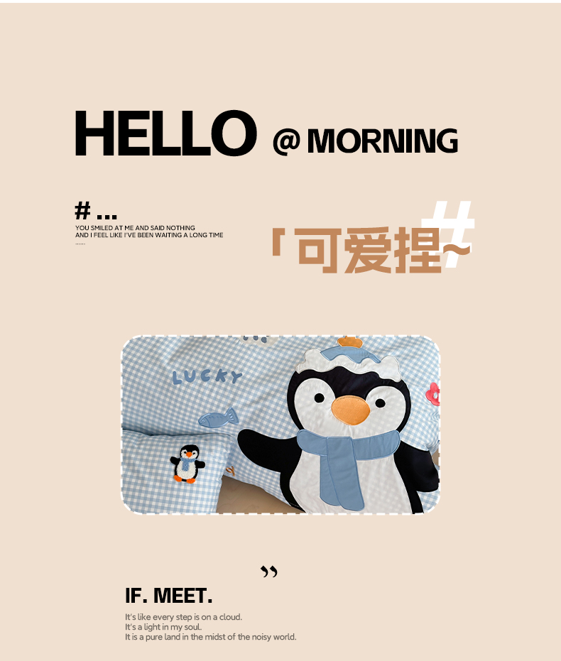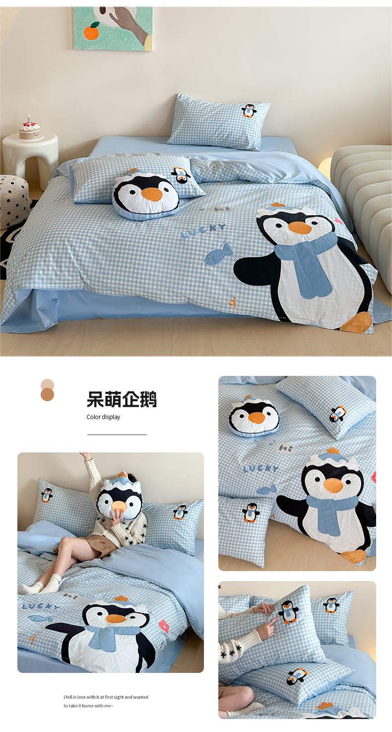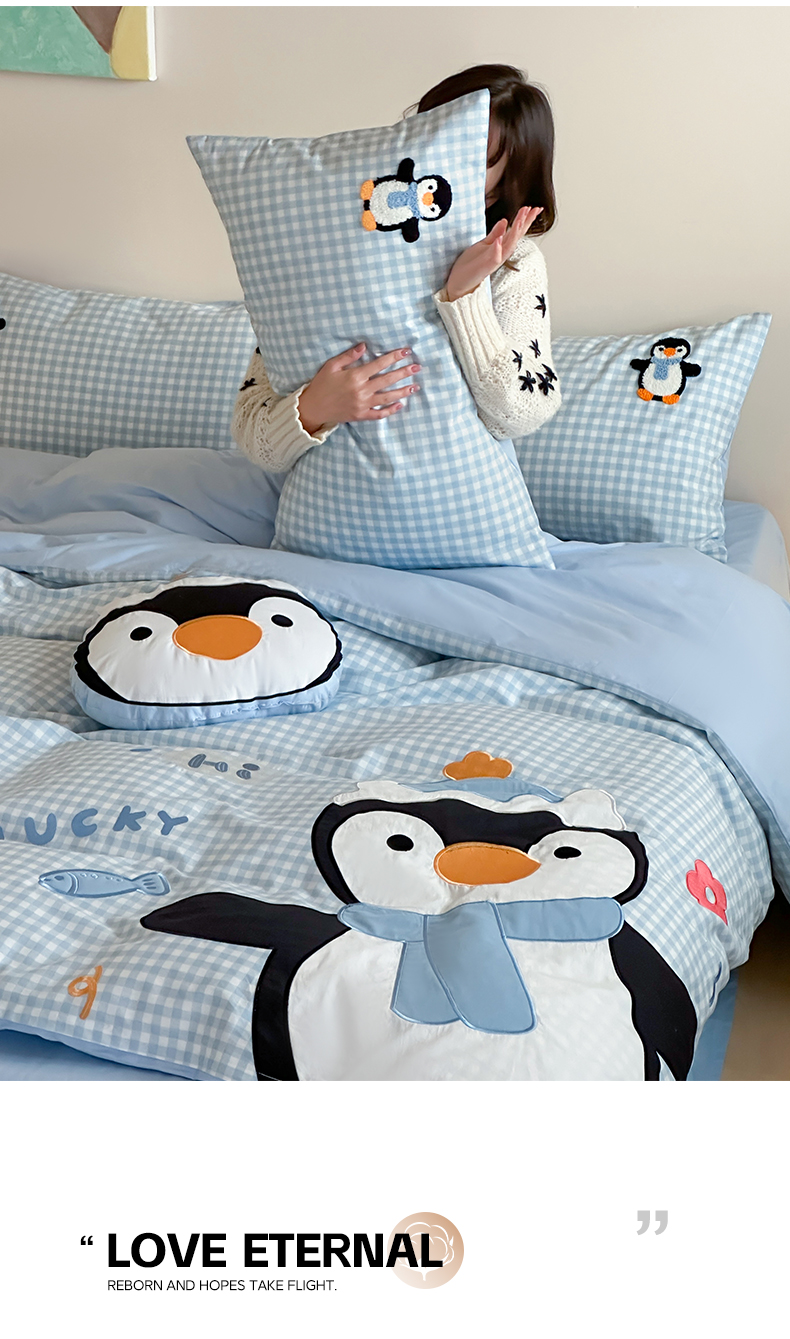 卡巴伦家纺 2025新款全棉卡通贴布绣四件套【全网控价(折后券后)不低于标准248元】 呆萌企鹅