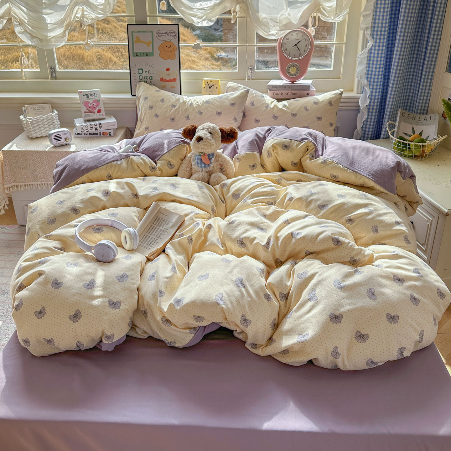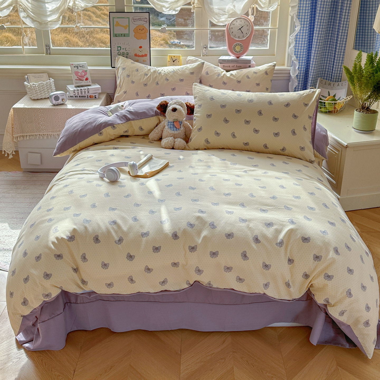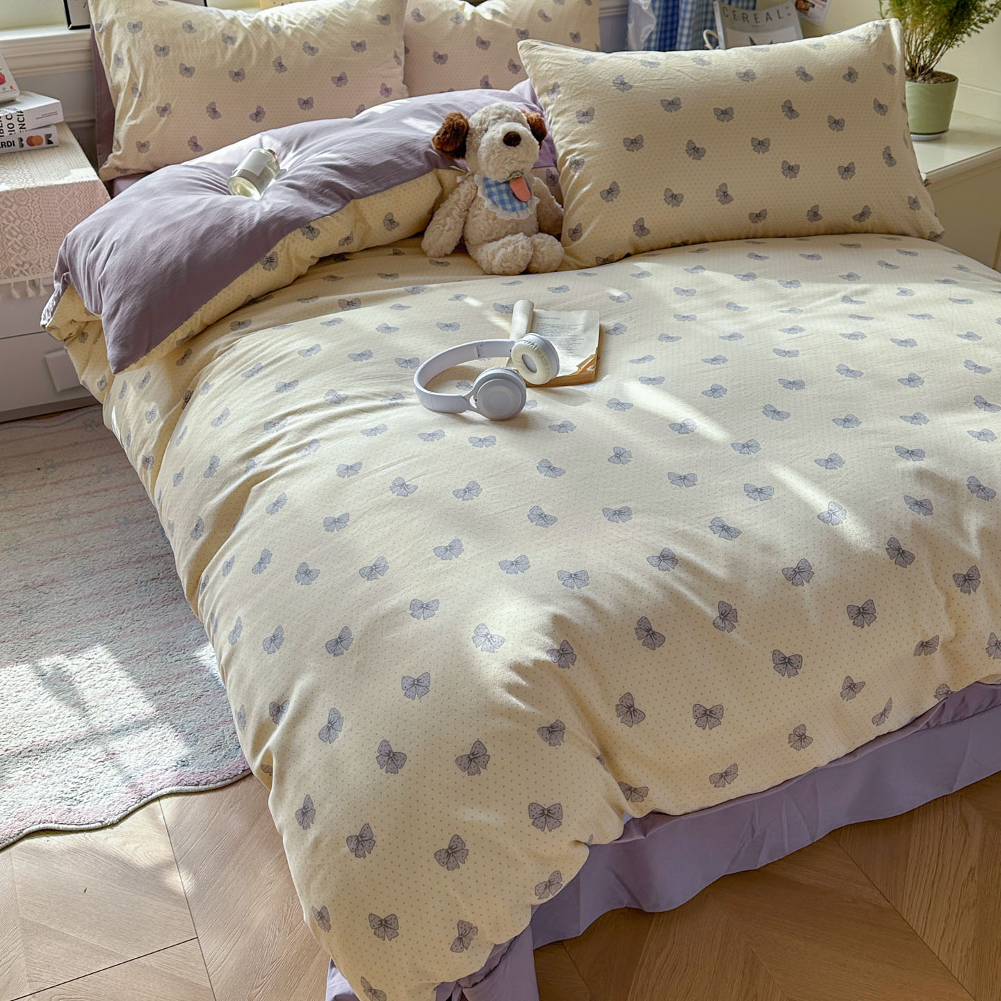 (总)暖伊家居 2026新款澳洲原单仿棉布袋四件套 硬包,腊肠狗,可可糖豆,格韵,野卉春,繁花,樱花可可,咖啡熊,芊朵,米蔷薇,清叙,樱花集,紫蝶
