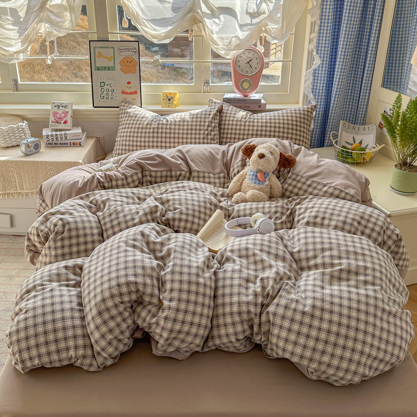 (总)暖伊家居 2026新款澳洲原单仿棉布袋四件套 硬包,腊肠狗,可可糖豆,格韵,野卉春,繁花,樱花可可,咖啡熊,芊朵,米蔷薇,清叙,樱花集,紫蝶