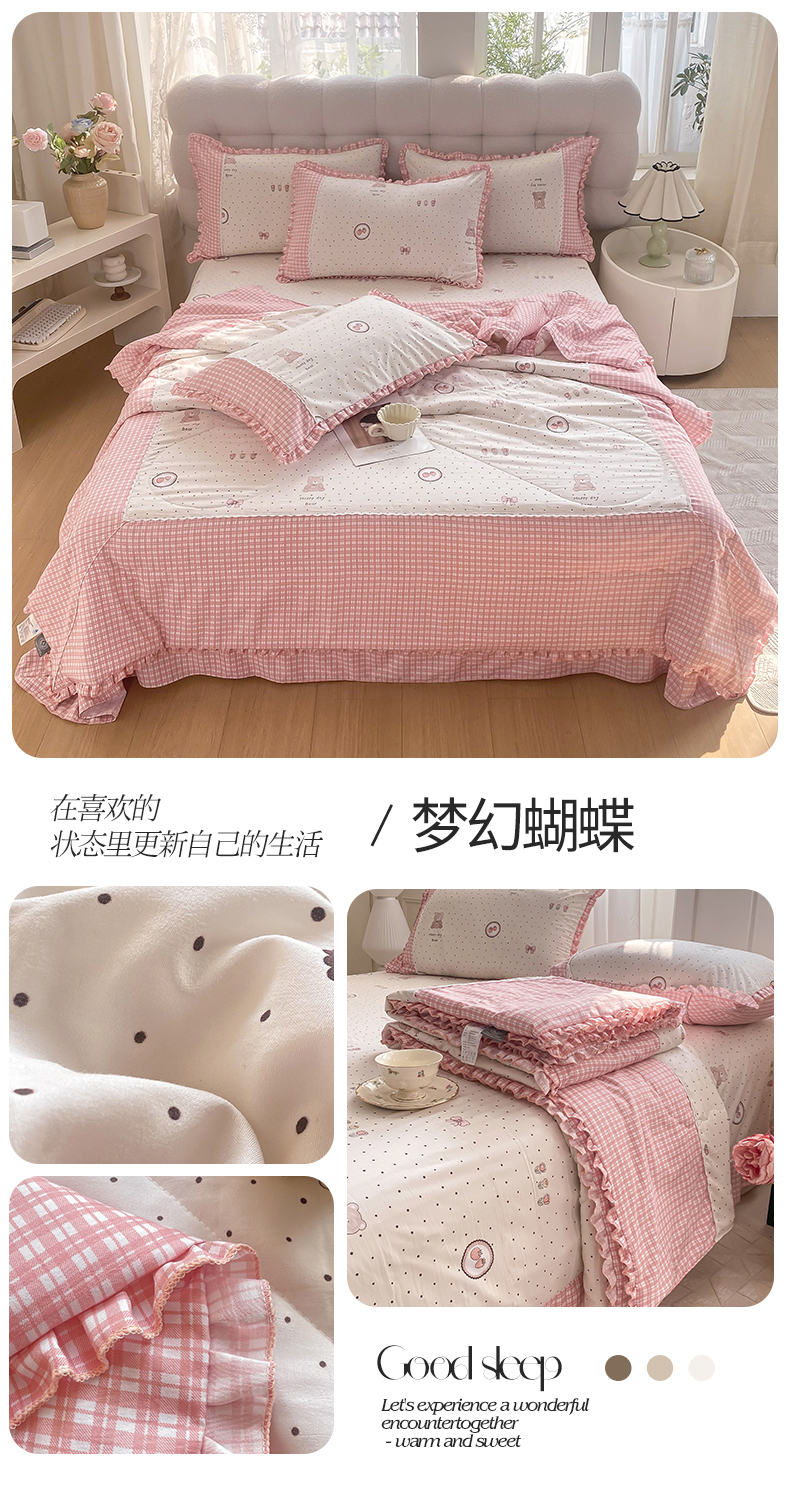 商品名称:皇谱家纺 2025新款A类水洗棉双层纱夏被四件套 梦幻蝴蝶