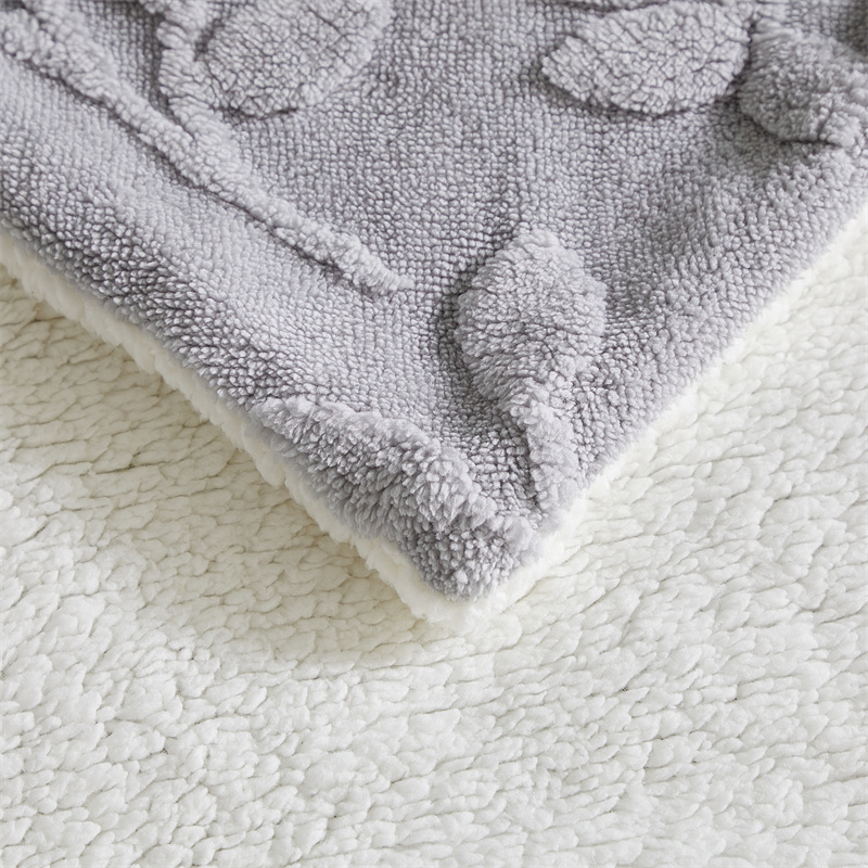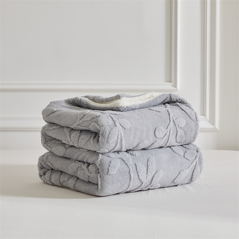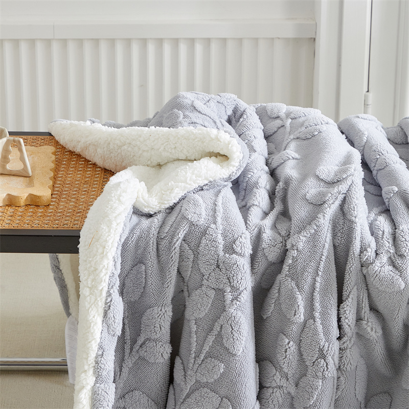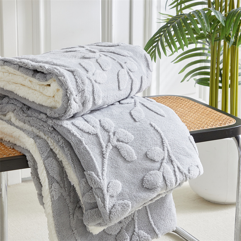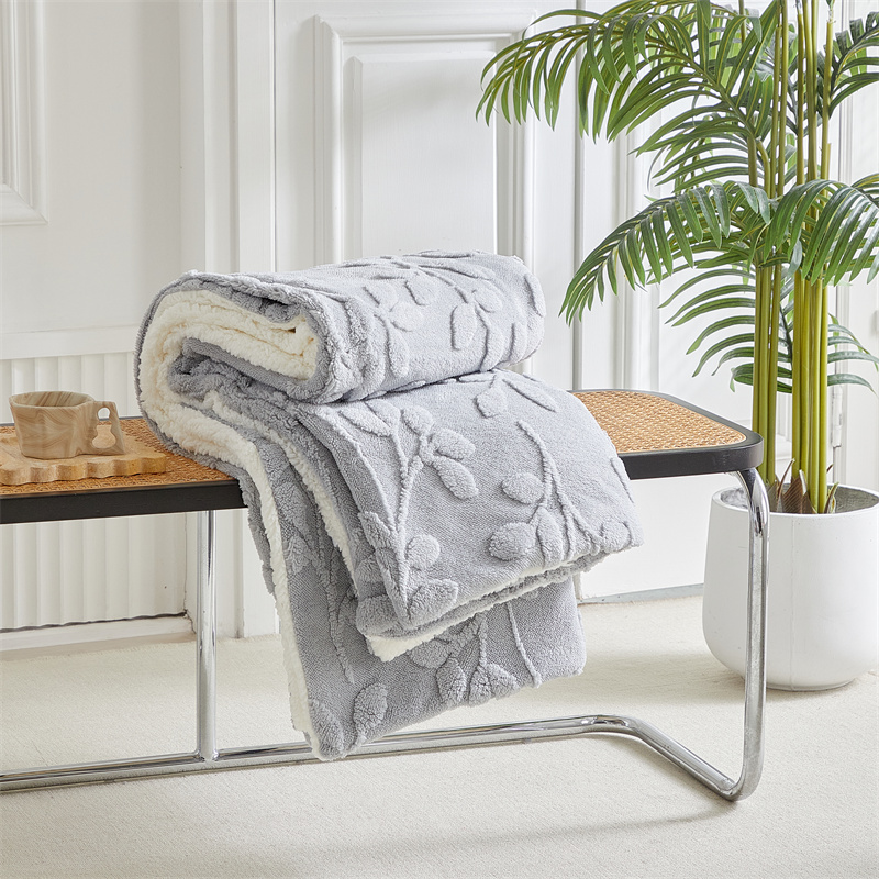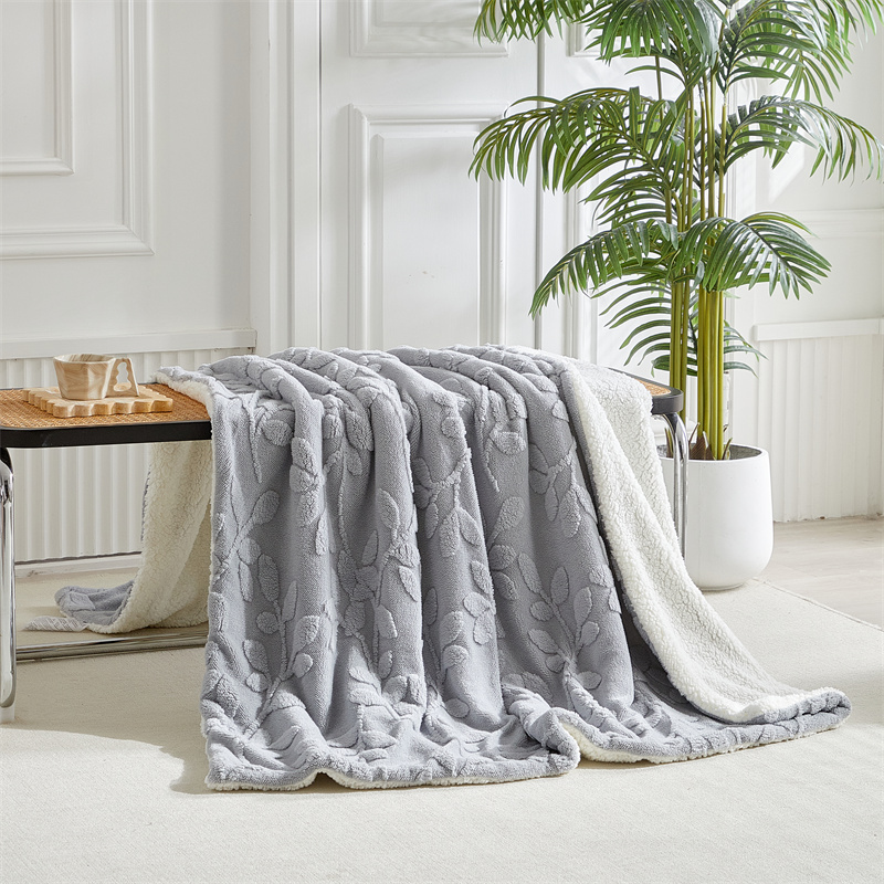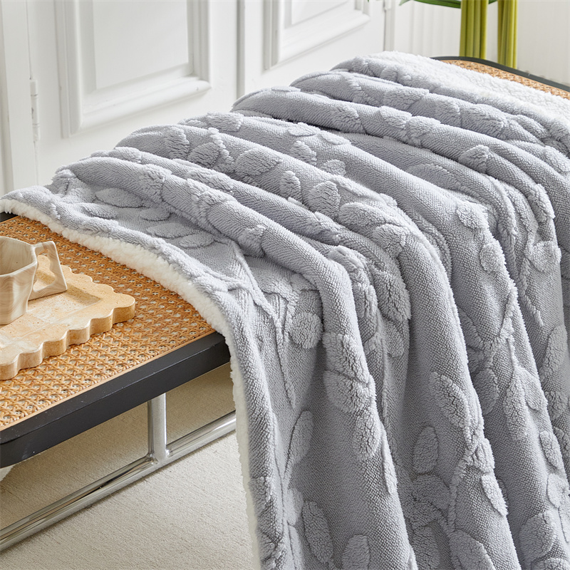 温宁2025新款跨境外贸专供树叶毯 树叶-银灰