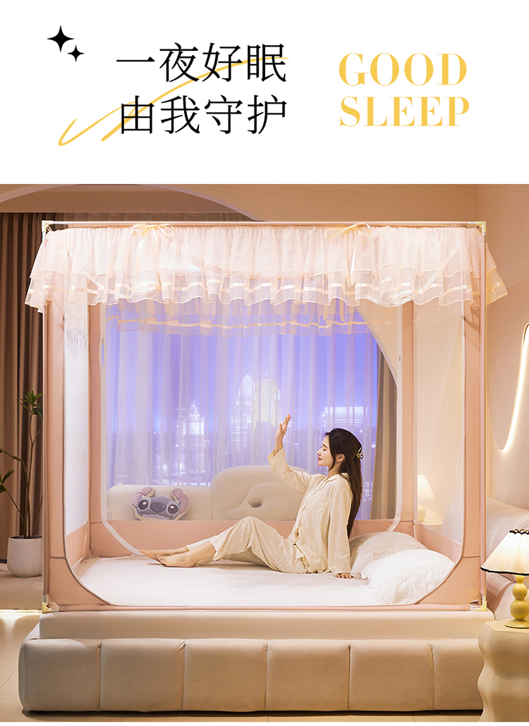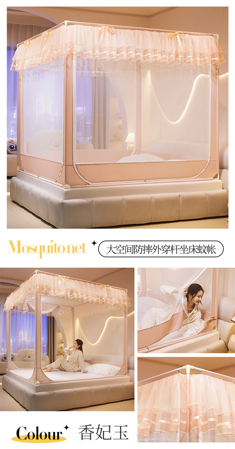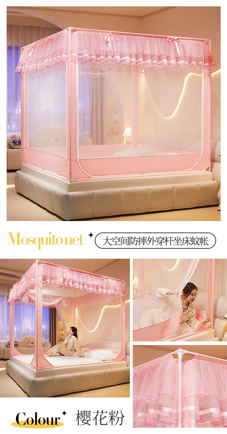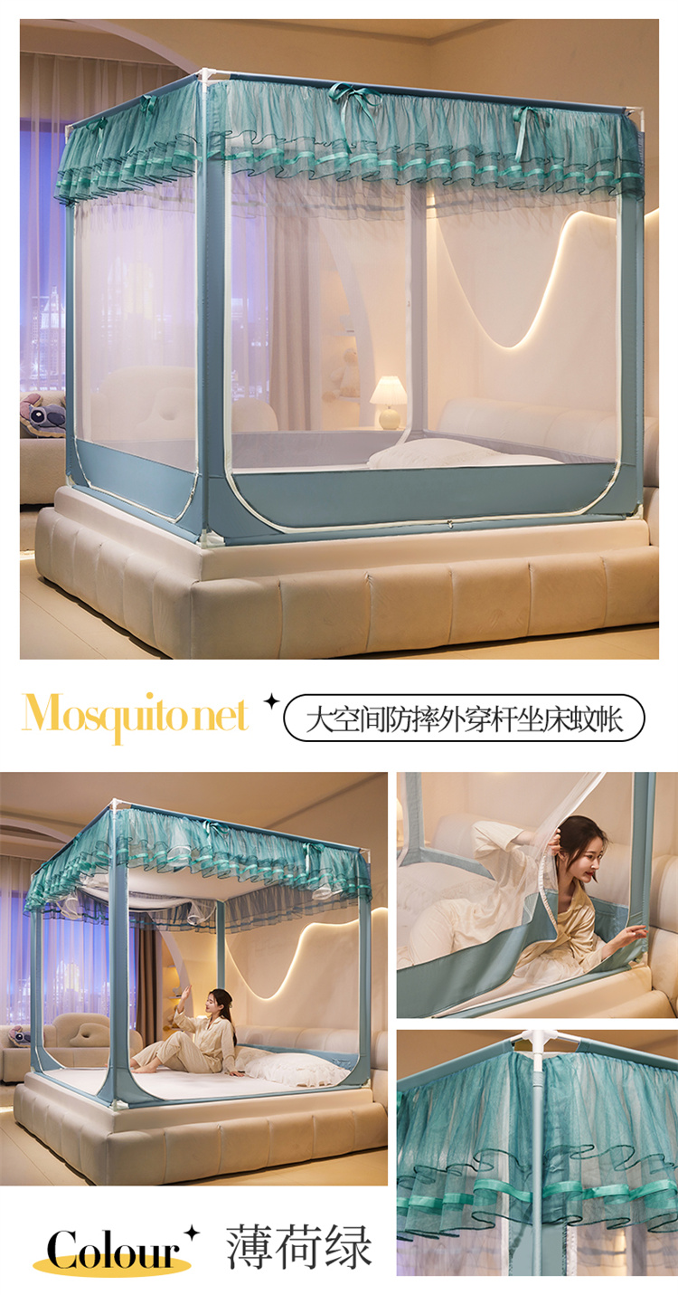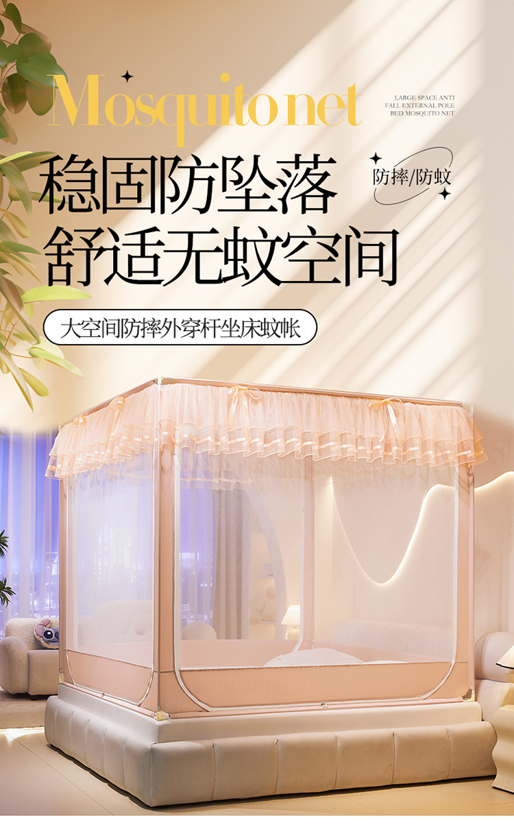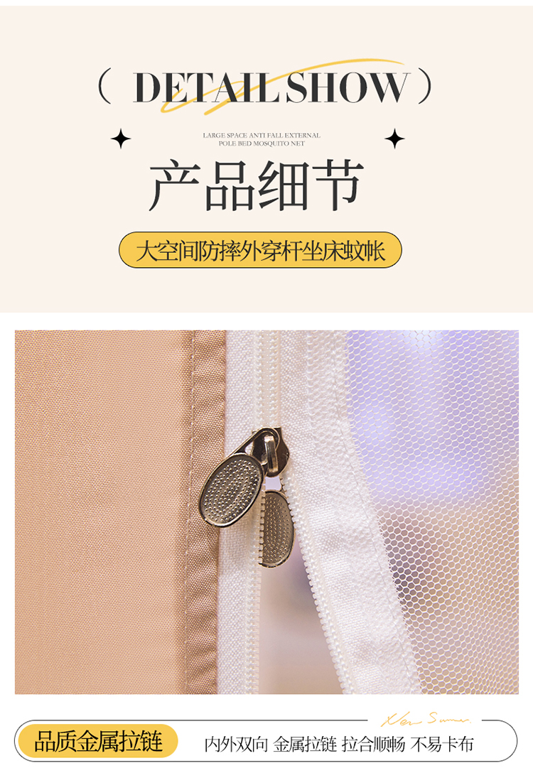 宝莱利家纺 坐床拉链防摔蚊帐(升级烤漆连接支架送风扇杆)