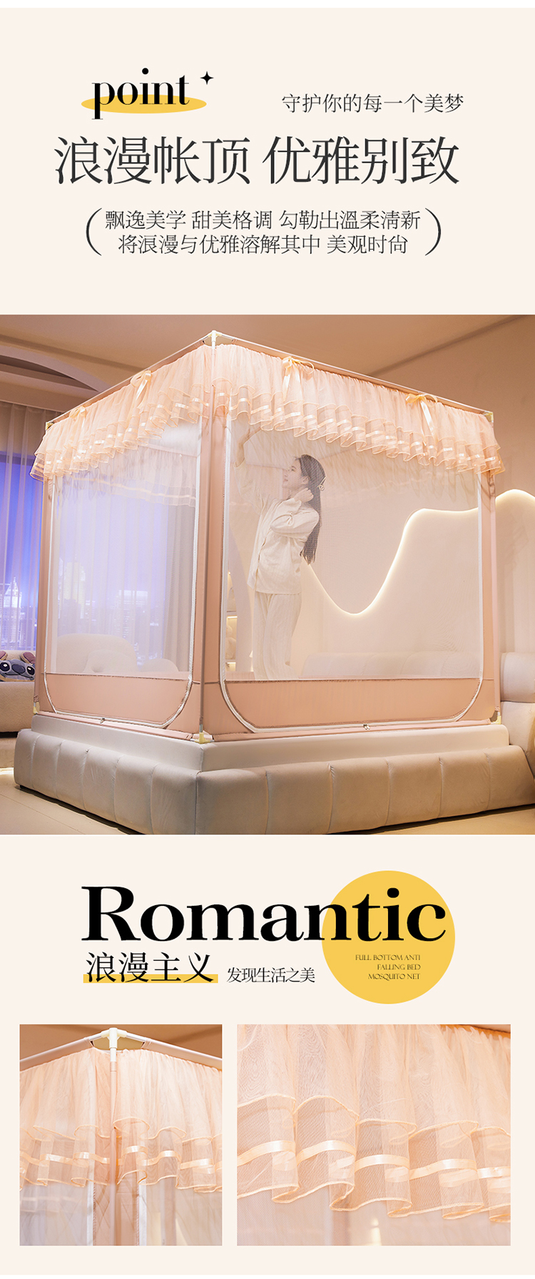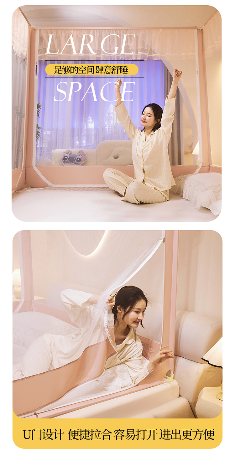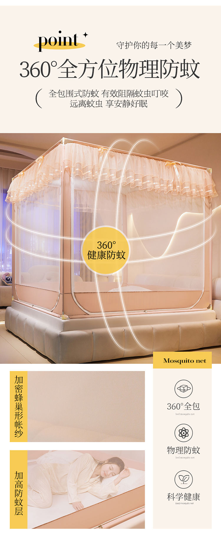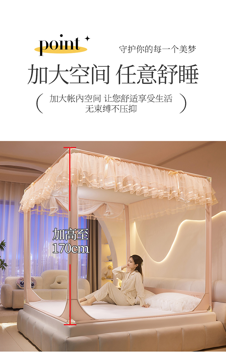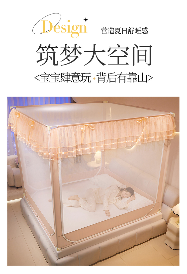 宝莱利家纺 坐床拉链防摔蚊帐(升级烤漆连接支架送风扇杆)