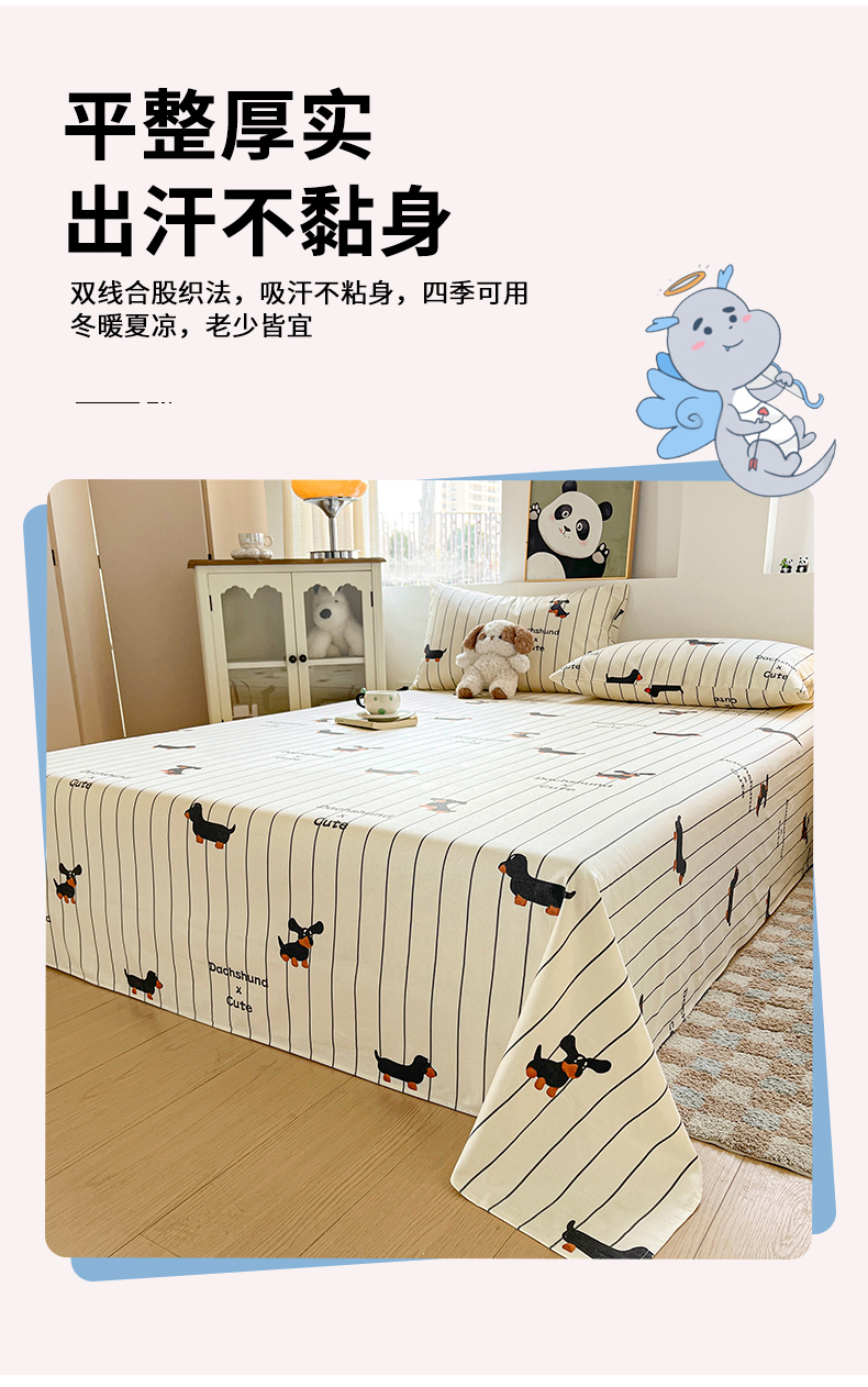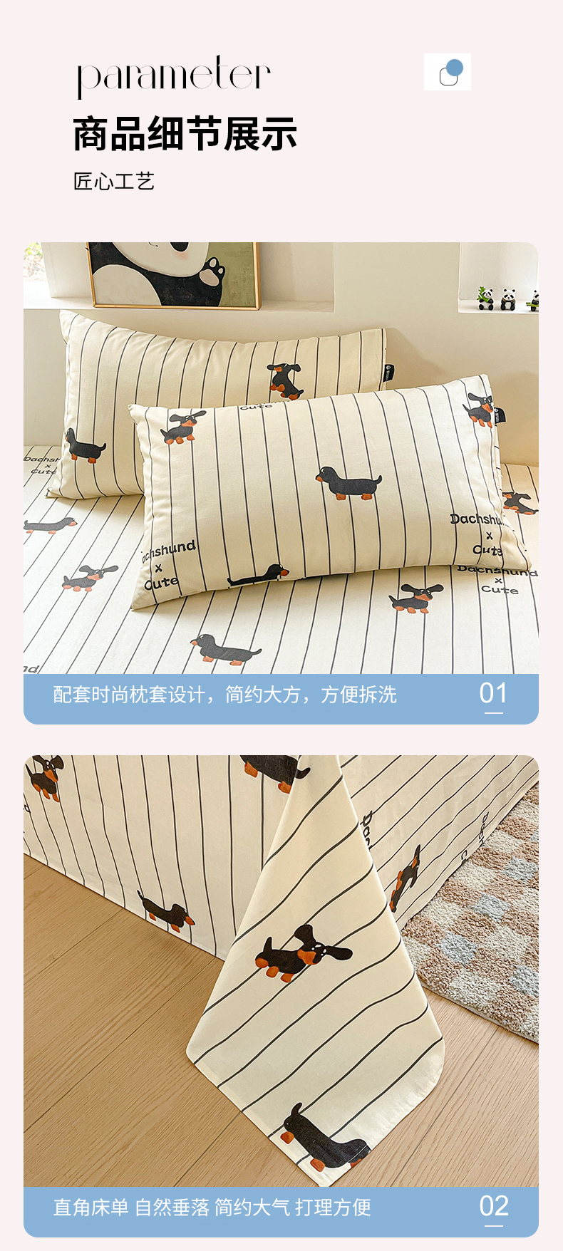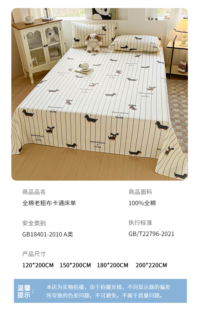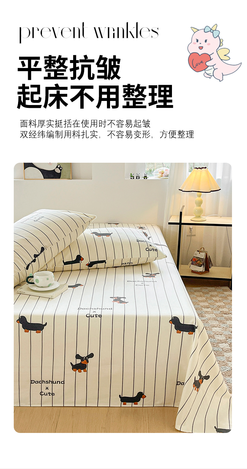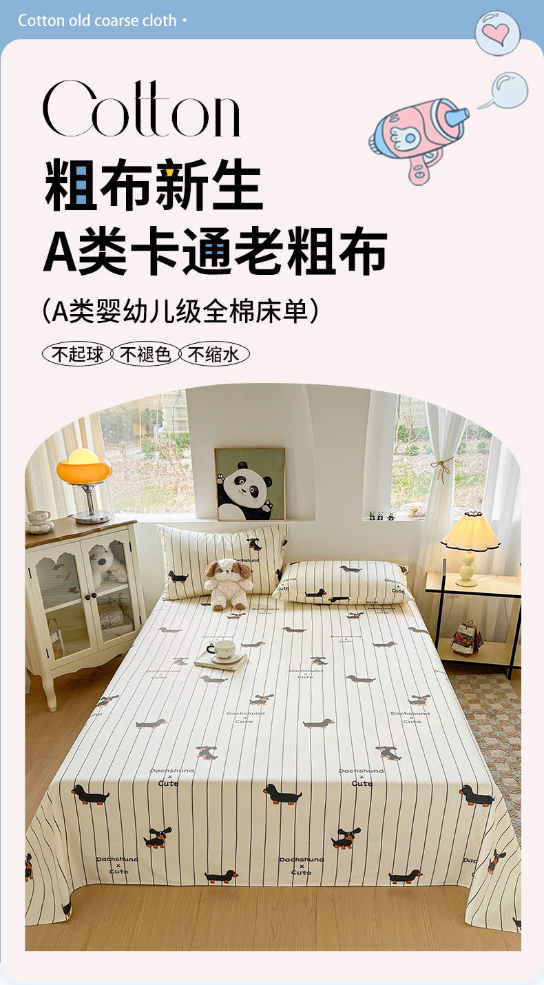 商品名称:鑫钰 2025新款纯棉老粗布单床单-卡通系列 腊肠狗