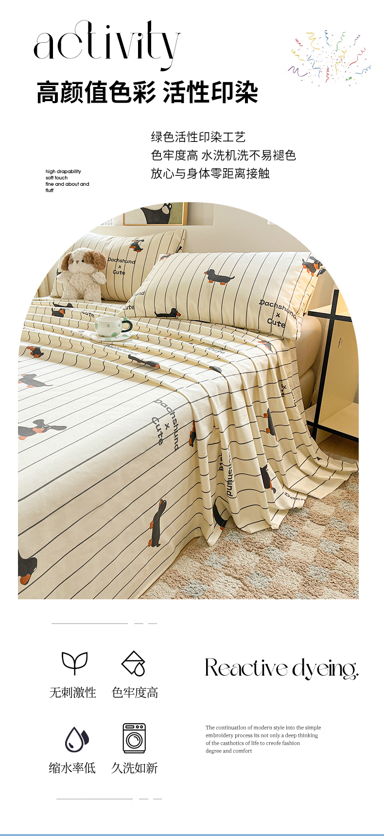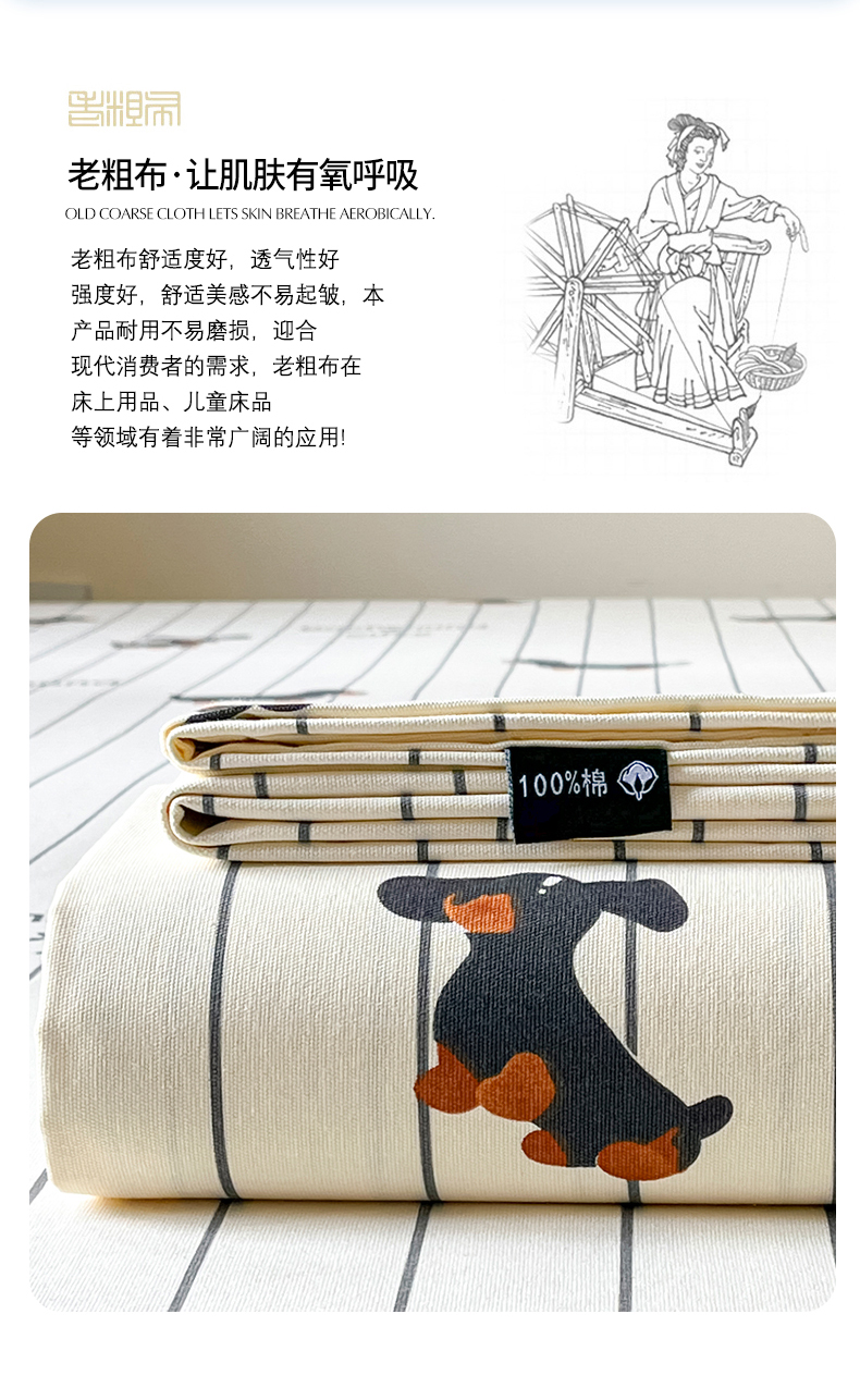 鑫钰 2025新款纯棉老粗布单床单-卡通系列 腊肠狗