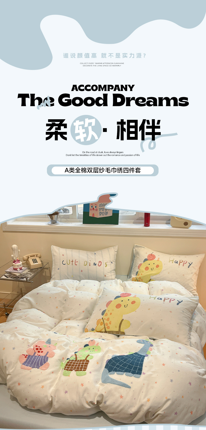 当前位置: 91家纺网 > 商品网购 > 床品套件 > 四件套 > 其它四件套 > 蓝邻家纺 2025年新款全棉双层纱毛巾绣四件套系列 奇幻王国