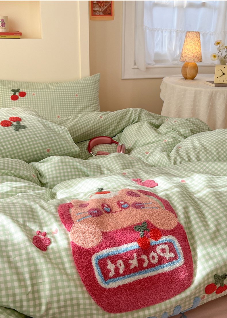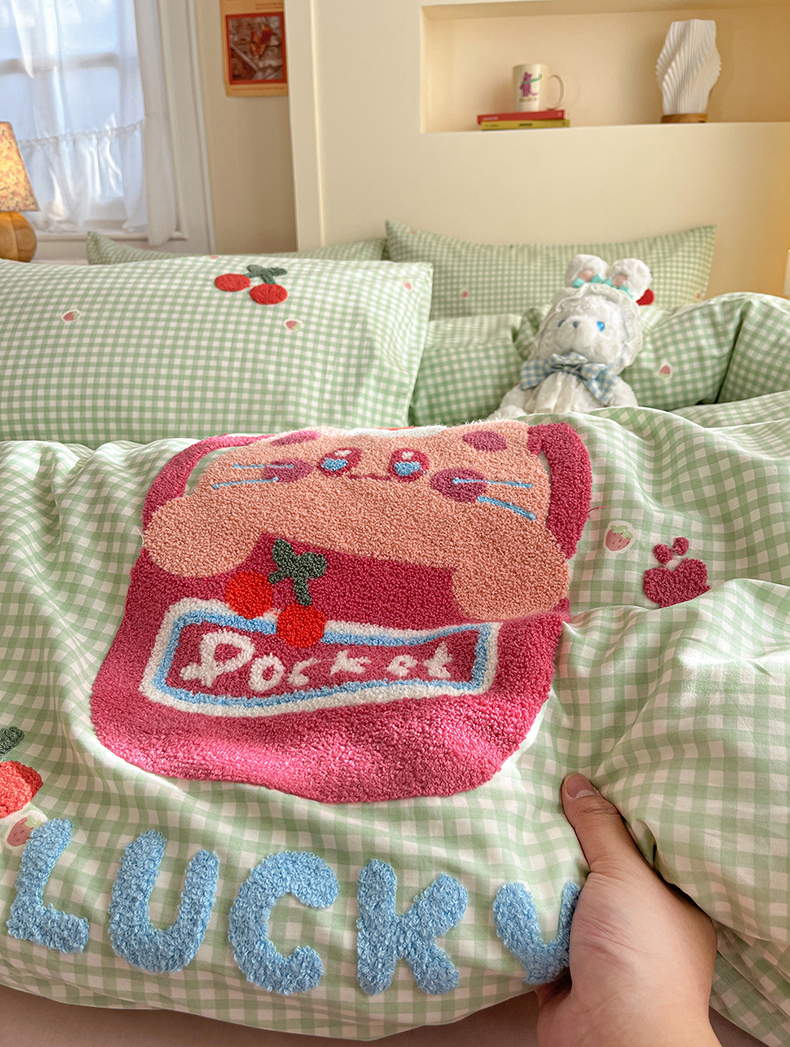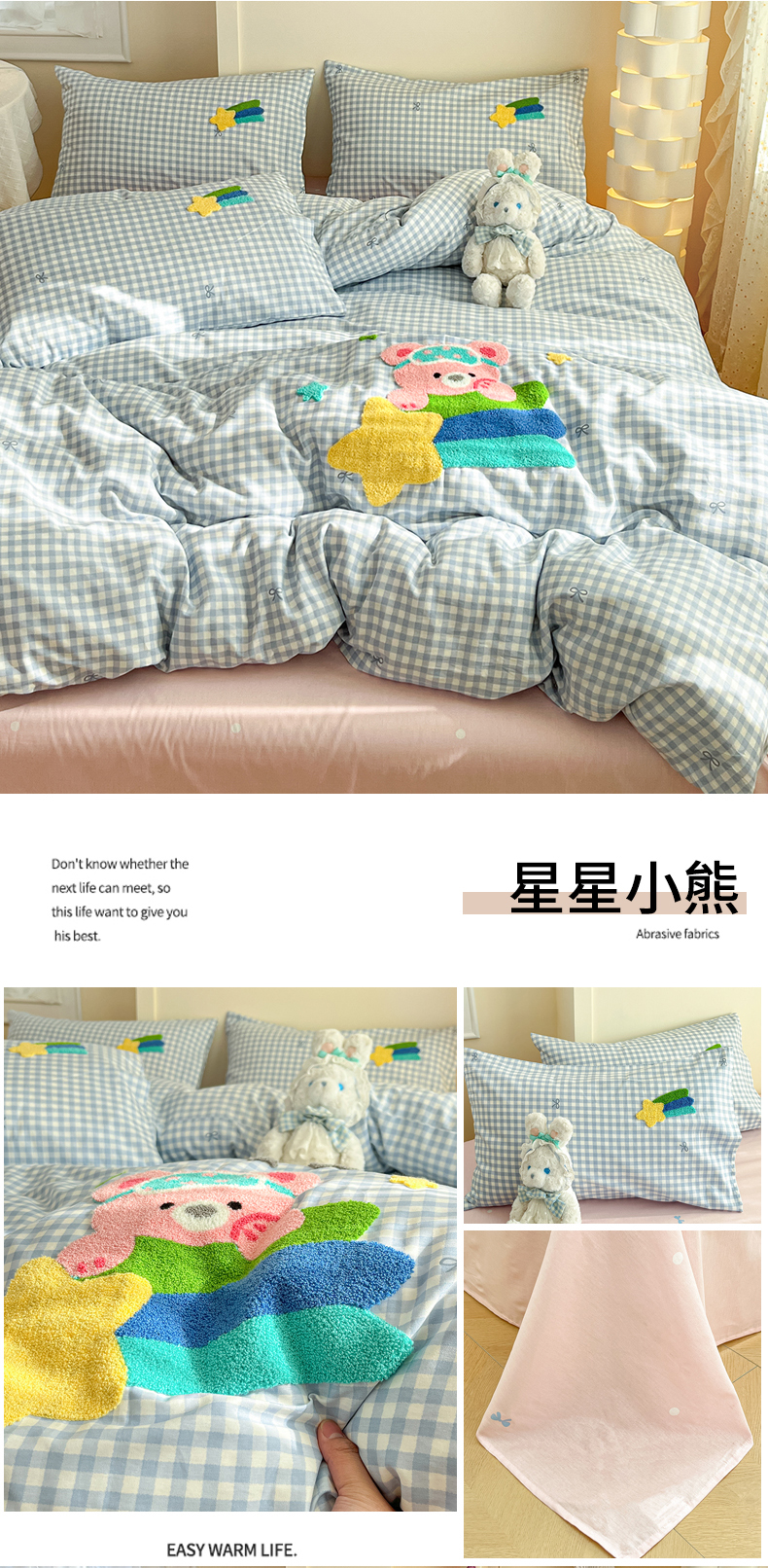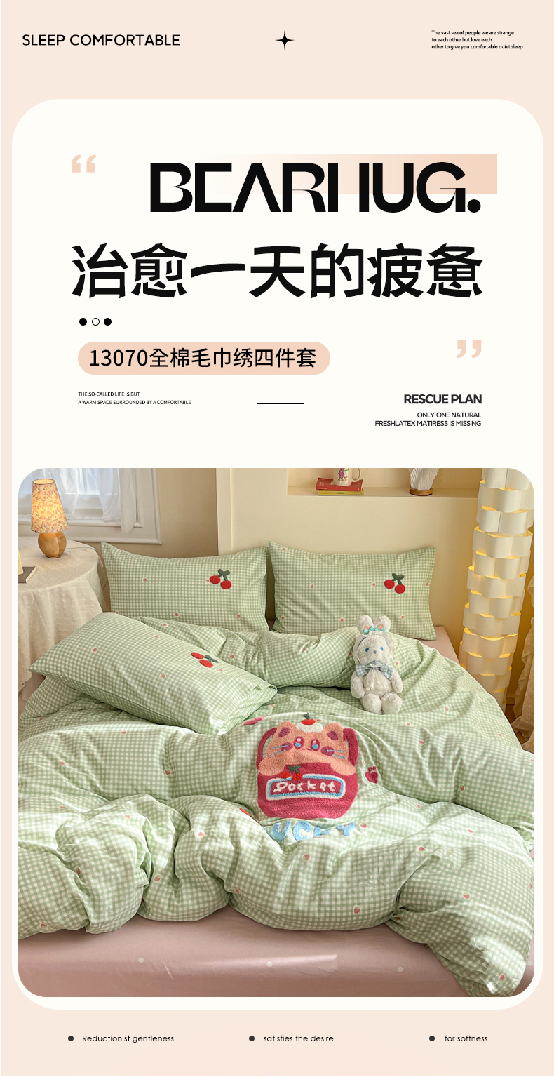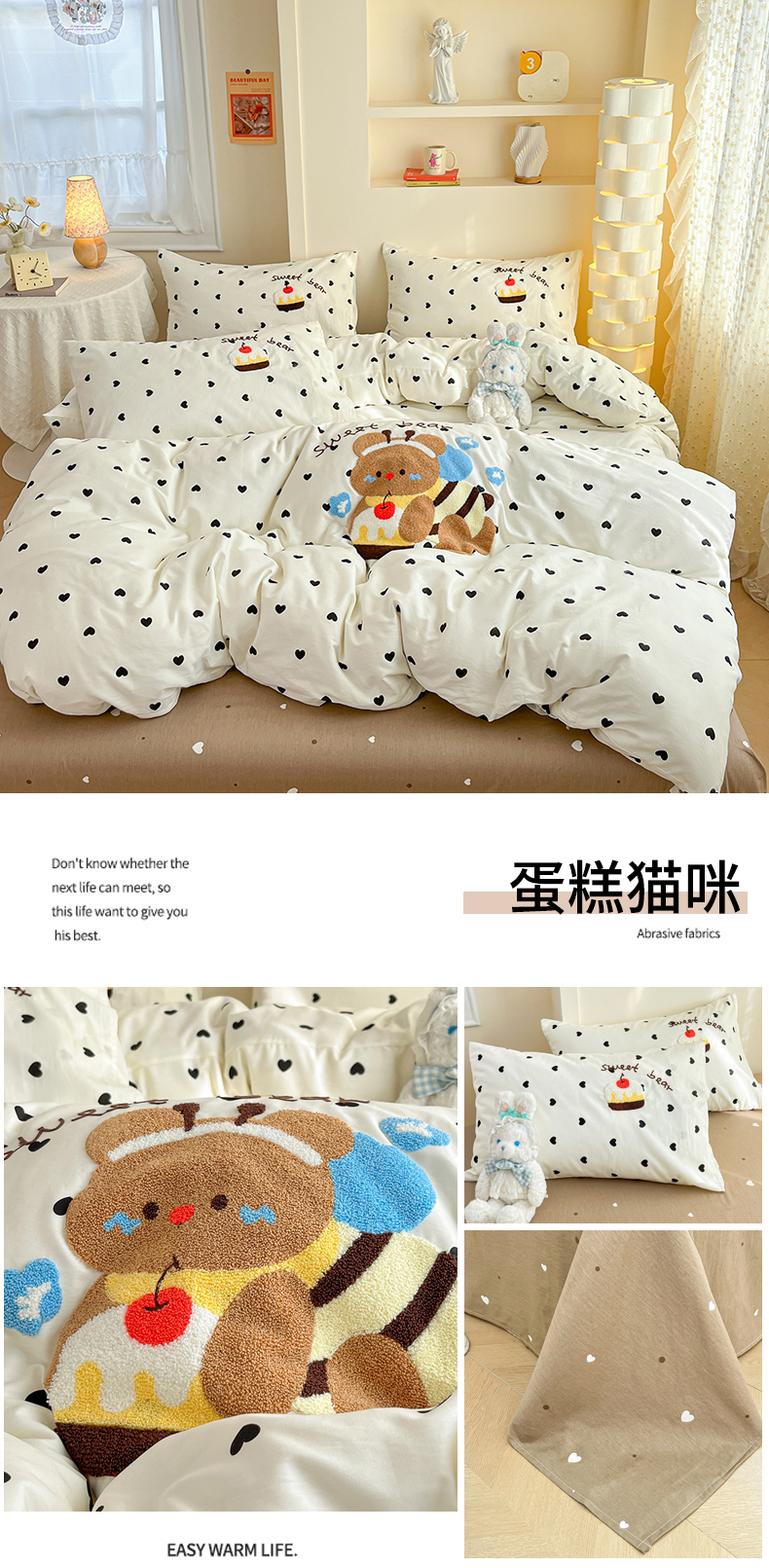 (总)沐辰 2025沐辰家居-新款13070印加绣纯棉套件,蛋糕猫咪,快乐小狗,面包小熊,星星小熊,樱桃猫咪