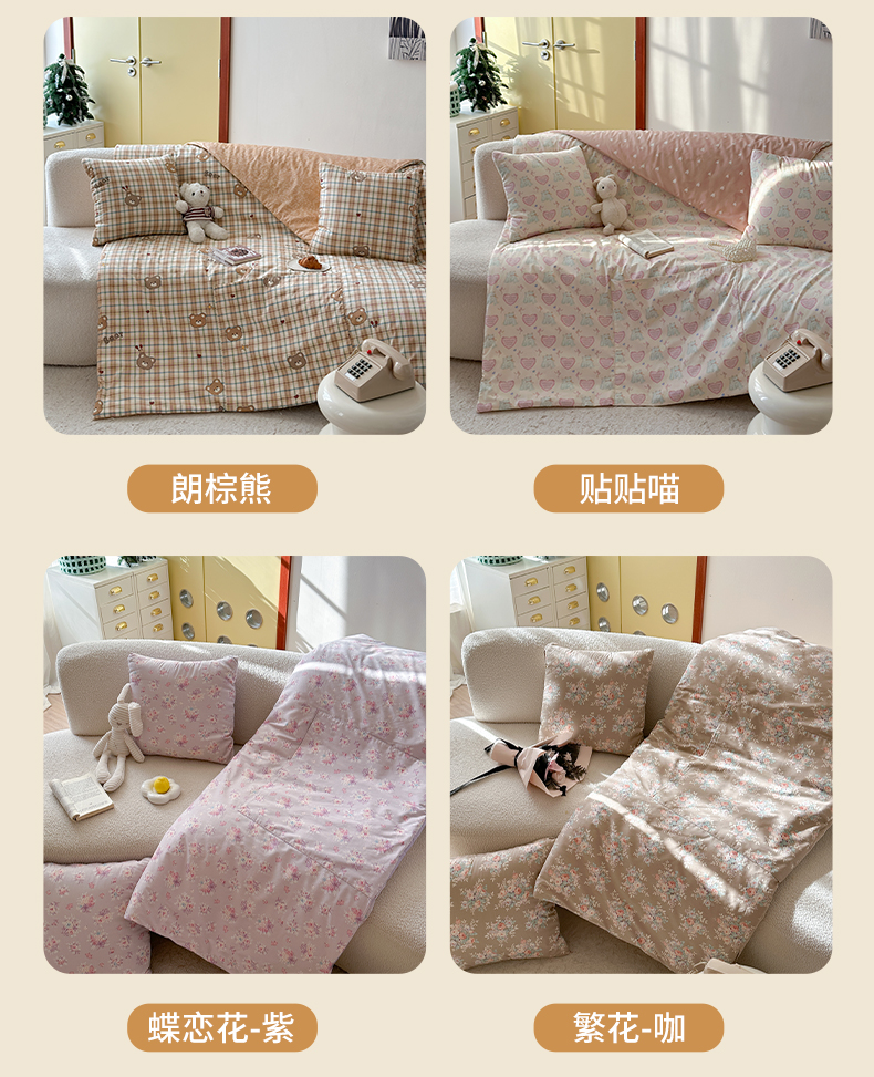 (总)多米家居 2025新款全棉口袋印花抱枕被,菠萝格-粉,菠萝格-蓝,一口平安果,蝶恋花-紫,繁花-咖,繁花-绿,莫奈-橙,动物世界,朗棕熊,贴贴喵,茶花物语,棋盘灰格,格调-蓝