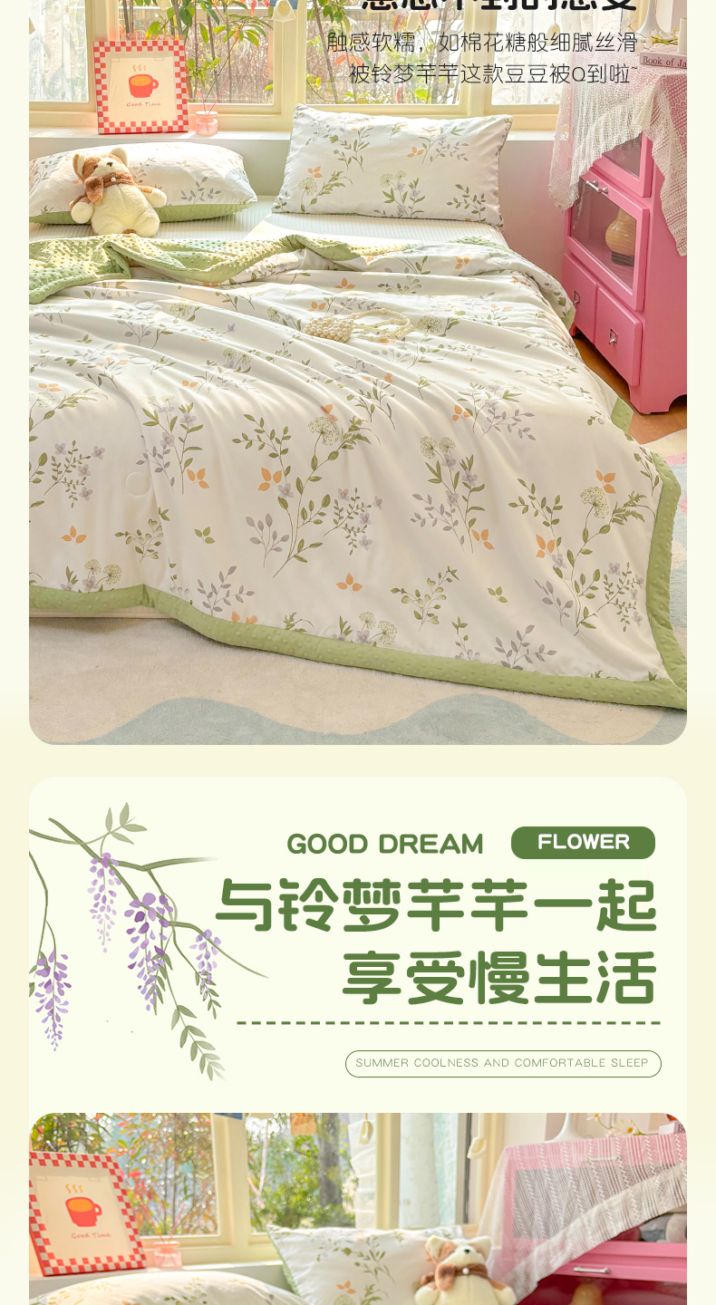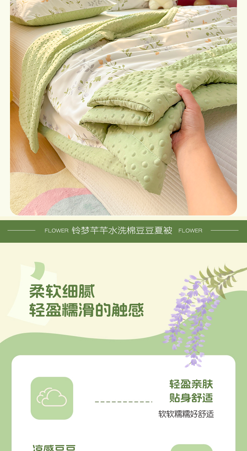 恒畅 2025新款A类水洗棉印花豆豆被抗菌夏被夏凉被空调被 铃梦芊芊