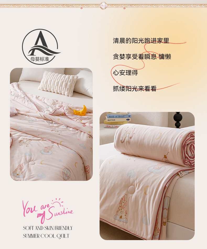 商品名称:优被业 2025新款A类牛奶丝针织棉夏被20%大豆(四周踩棉)软糯夏凉被空调被 城堡