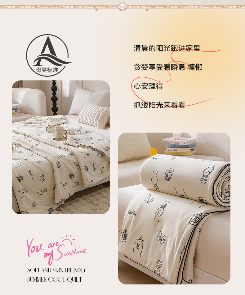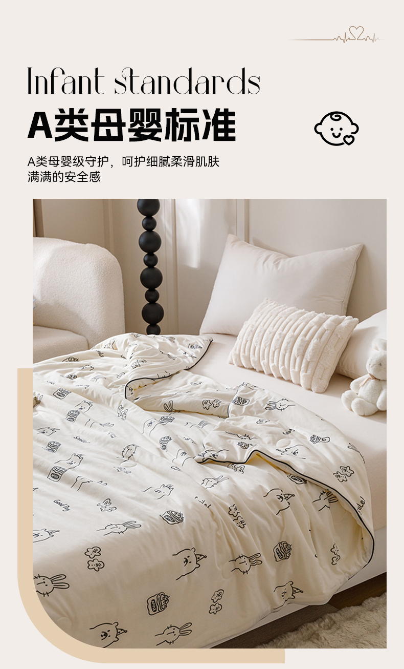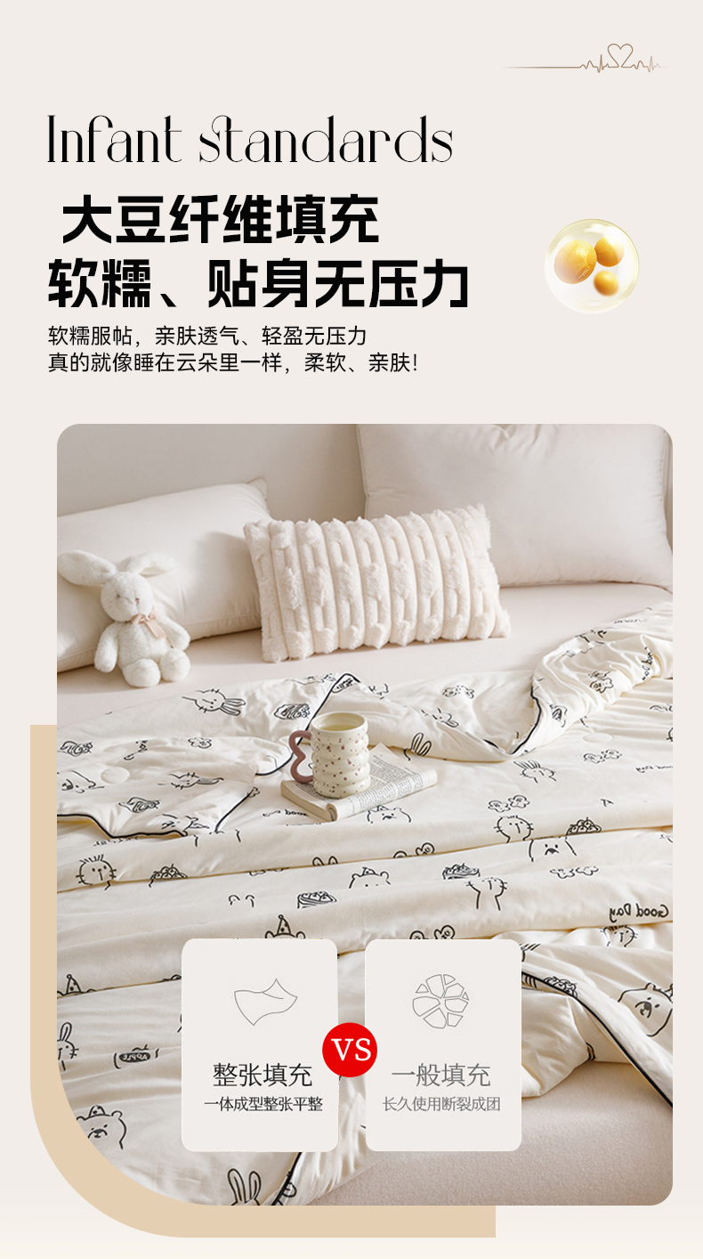 商品名称:优被业 2025新款A类牛奶丝针织棉夏被20%大豆(四周踩棉)软糯夏凉被空调被 流氓兔兔