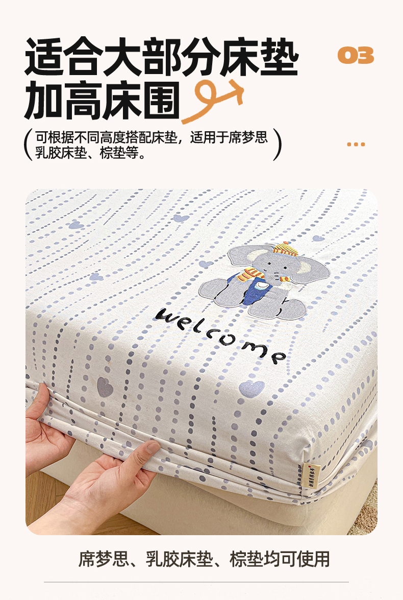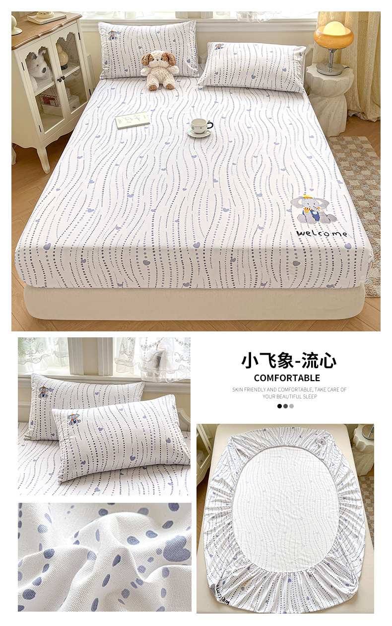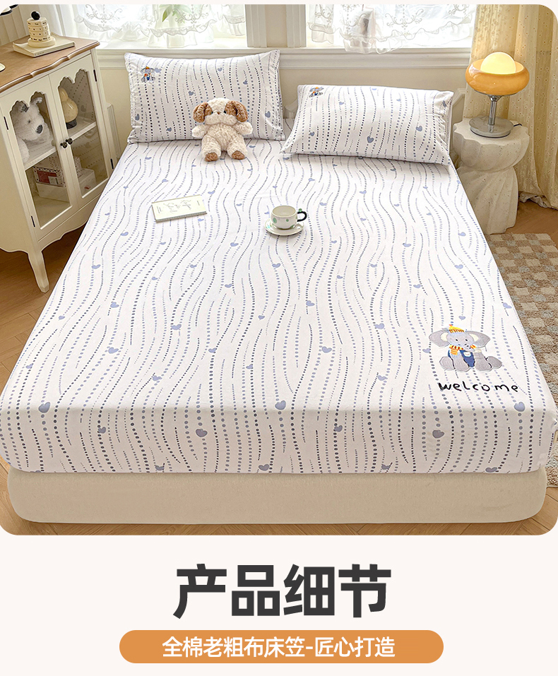 笙意家纺2025新款全棉老粗布单床笠 小飞象-流心