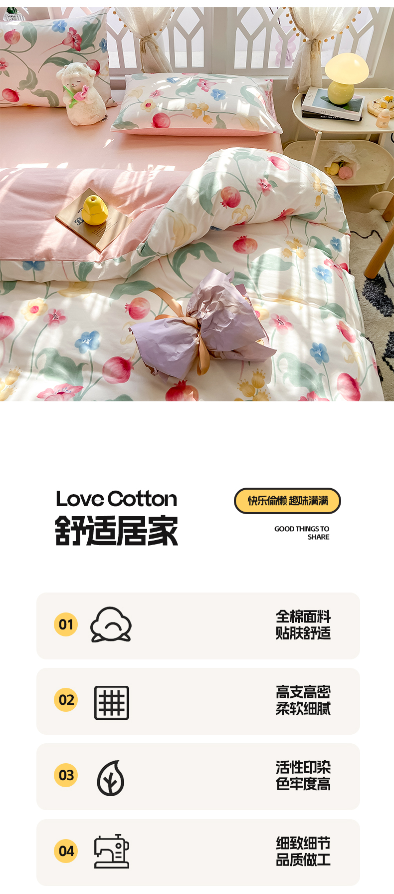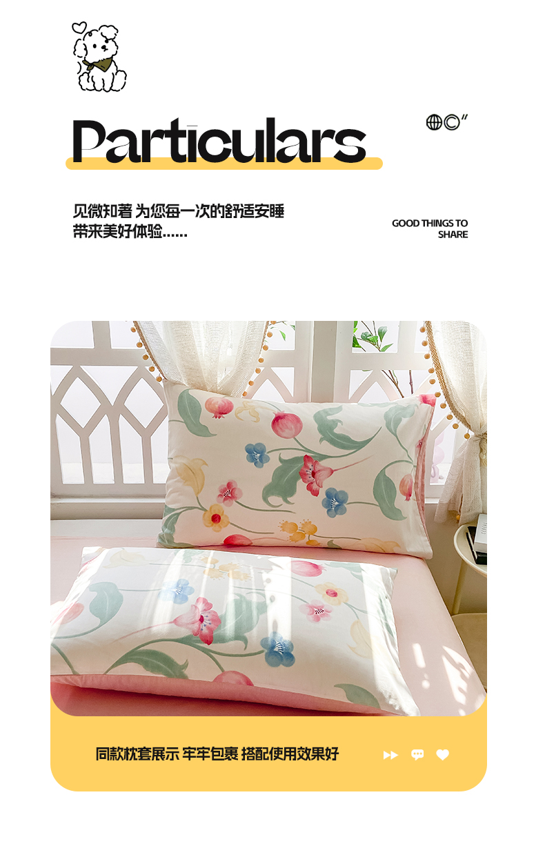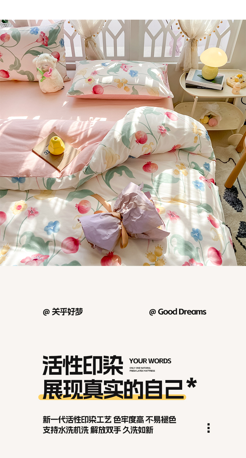 商品名称:宜家坊 2025早春新品全棉纯棉喷气13070小清新印花纯棉四件套-风格二 时留