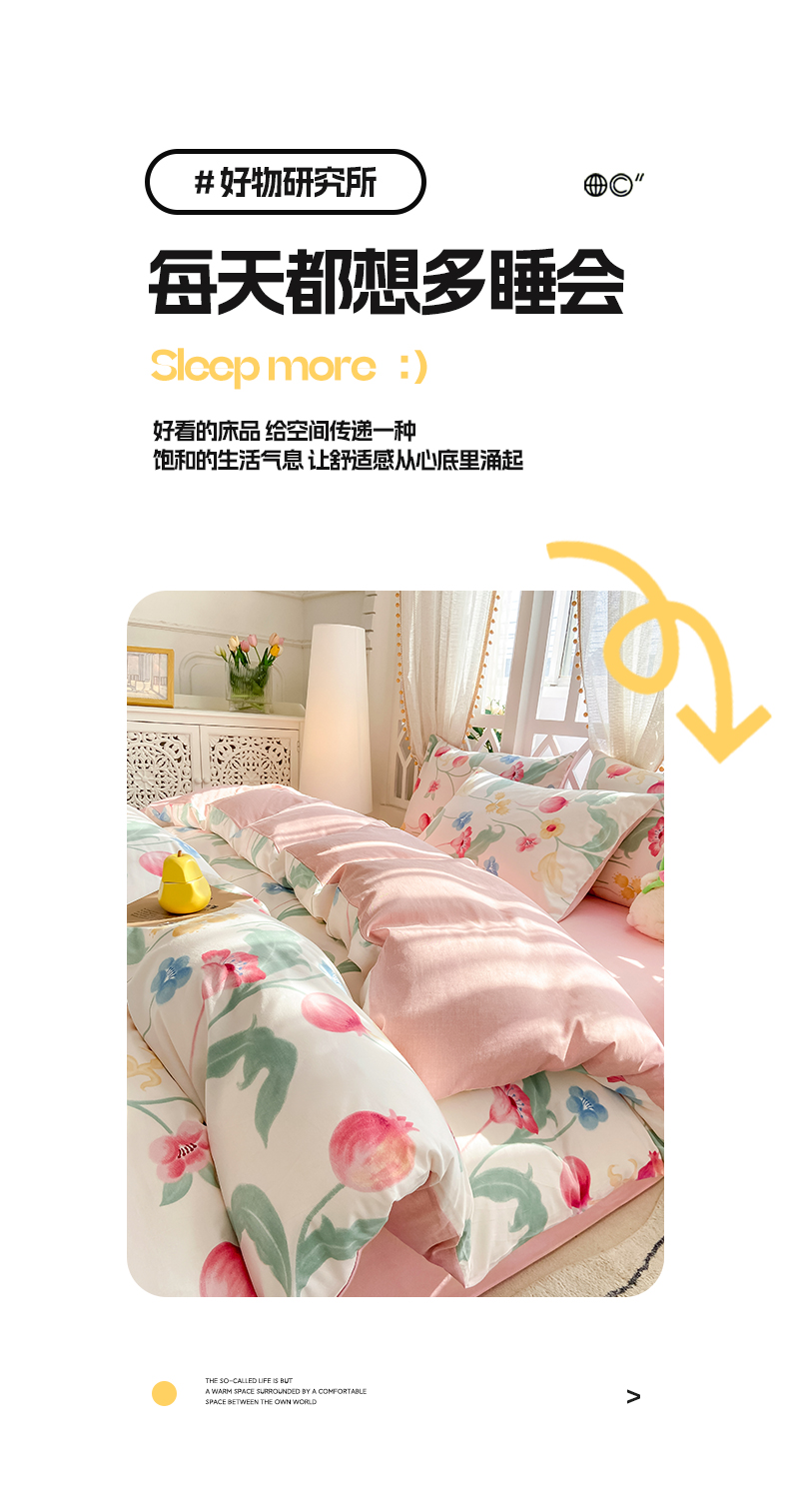 宜家坊 2025早春新品全棉纯棉喷气13070小清新印花纯棉四件套-风格二 时留
