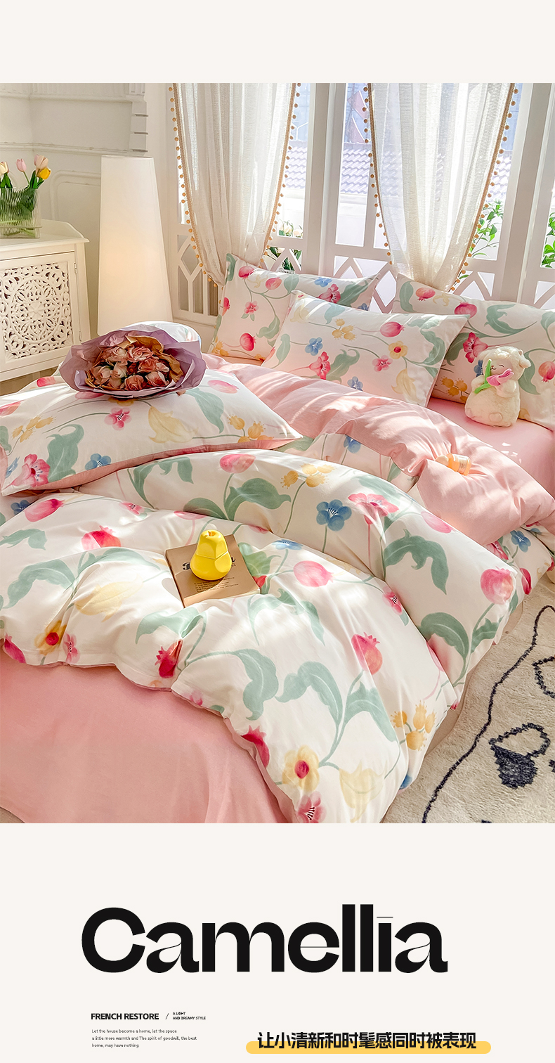(总)宜家坊 2023新款直播韩版印花花边款牛奶绒四件套,比格熊,草莓兔,春暖花开,告白,加油鸭,流星花园,萌萌熊,牛油果,千鸟格,小女孩,一见倾心,郁金香