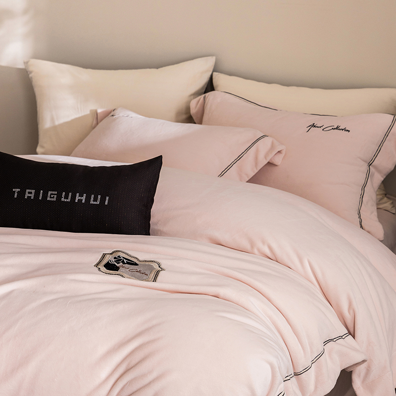 太古汇家居 2025新款云肤绒绒绣花赫本系列四件套 绒赫本-粉色