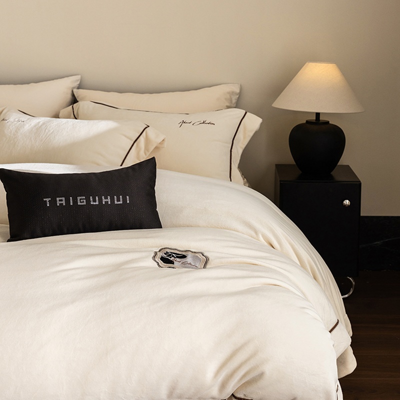 (总)太古汇家居 2025新款240克牛奶绒工艺款四件套-缪斯系列 (会员250/270,毛毡带包装,淘宝上图价格-券后不低于358),缪斯-大象灰,缪斯-果绿,缪斯-奶油咖,缪斯-甜心粉