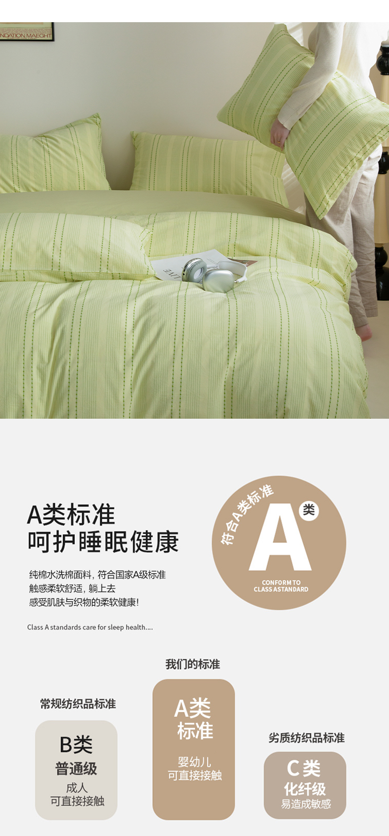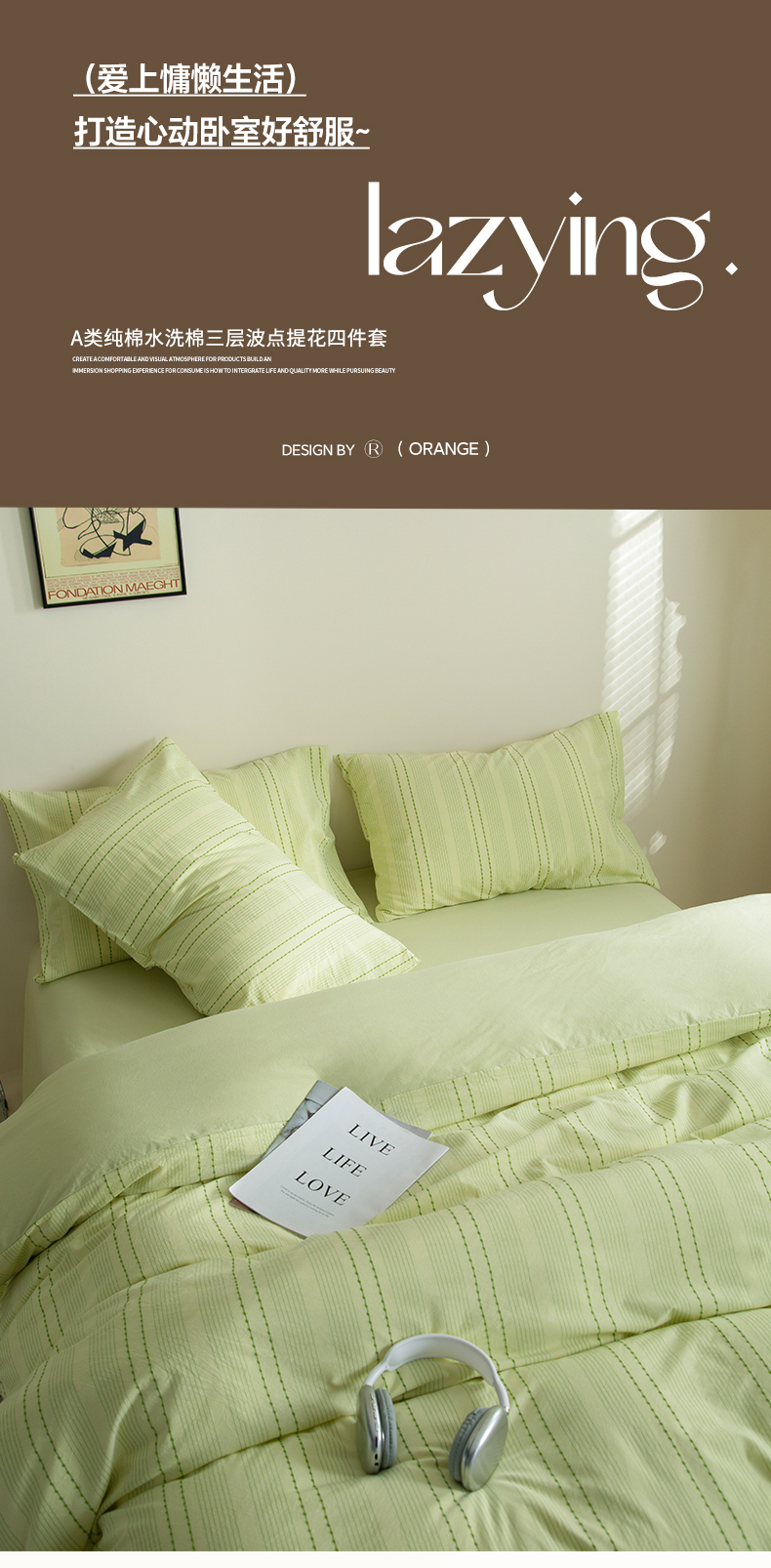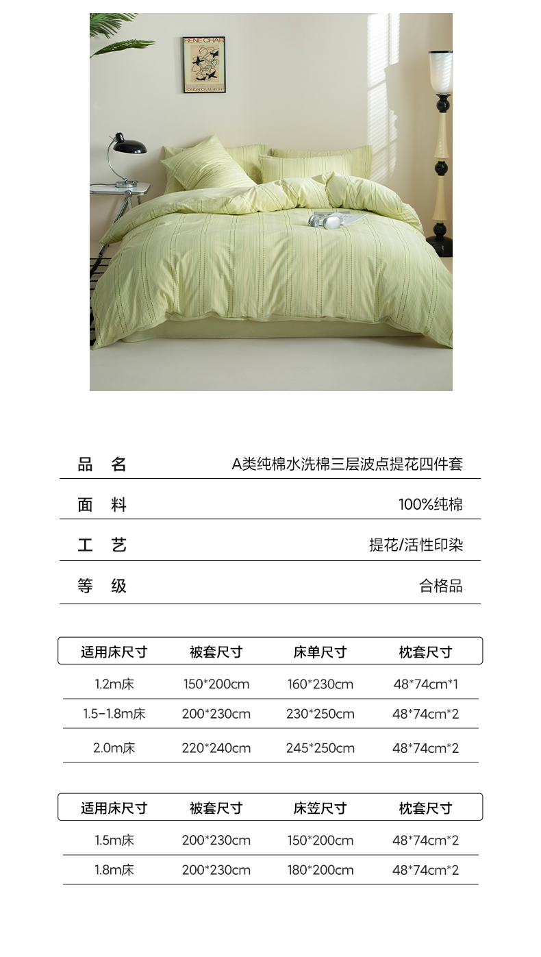 商品名称:2025新款纯棉水洗棉三层波点提花四件套 波点四件套-果绿