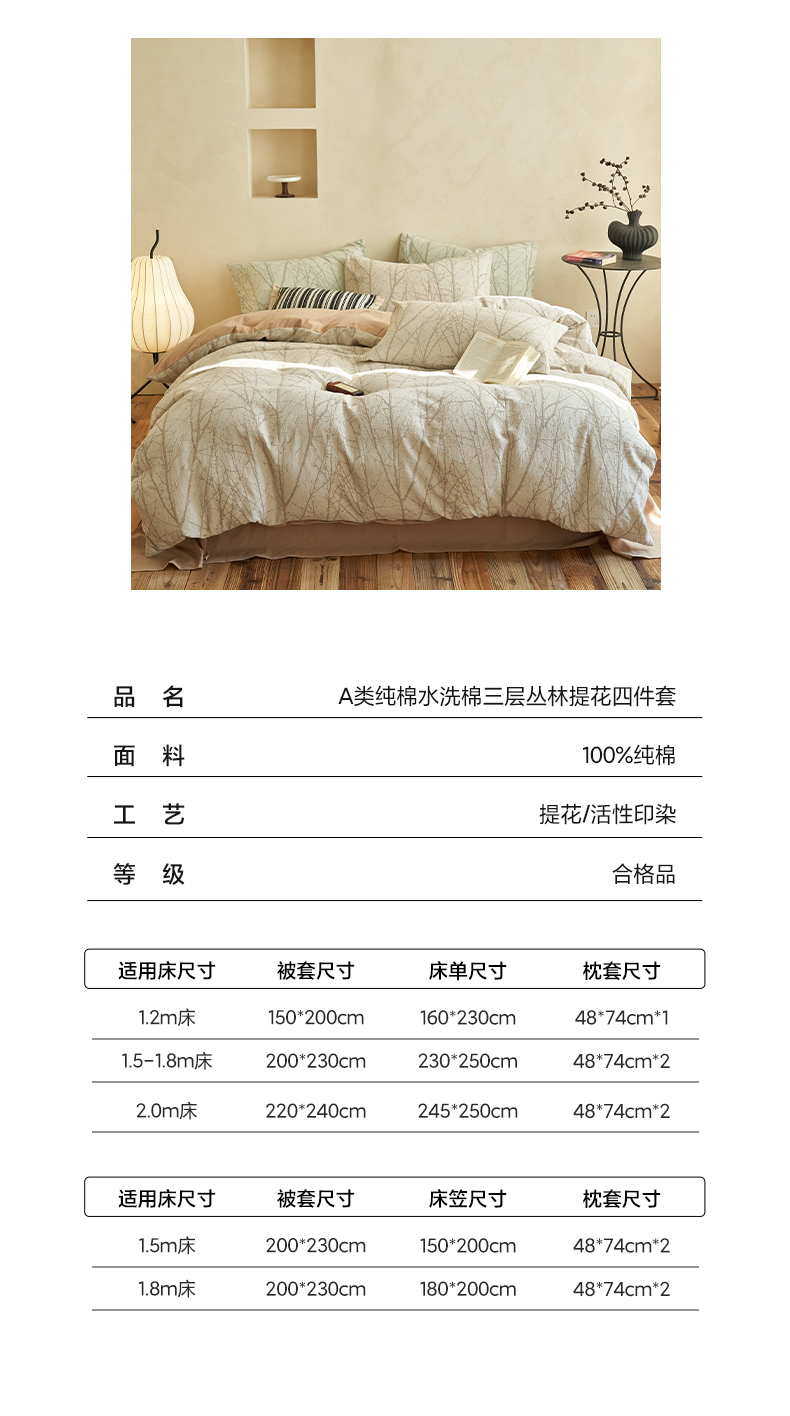 商品名称:(总)2025新款纯棉水洗棉三层丛林提花四件套