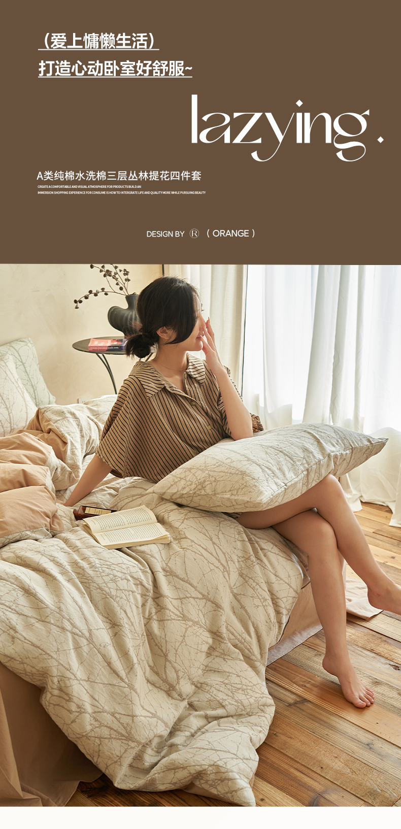 (总)2025新款纯棉水洗棉三层丛林提花四件套