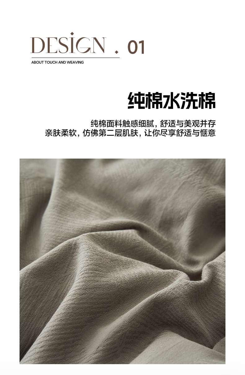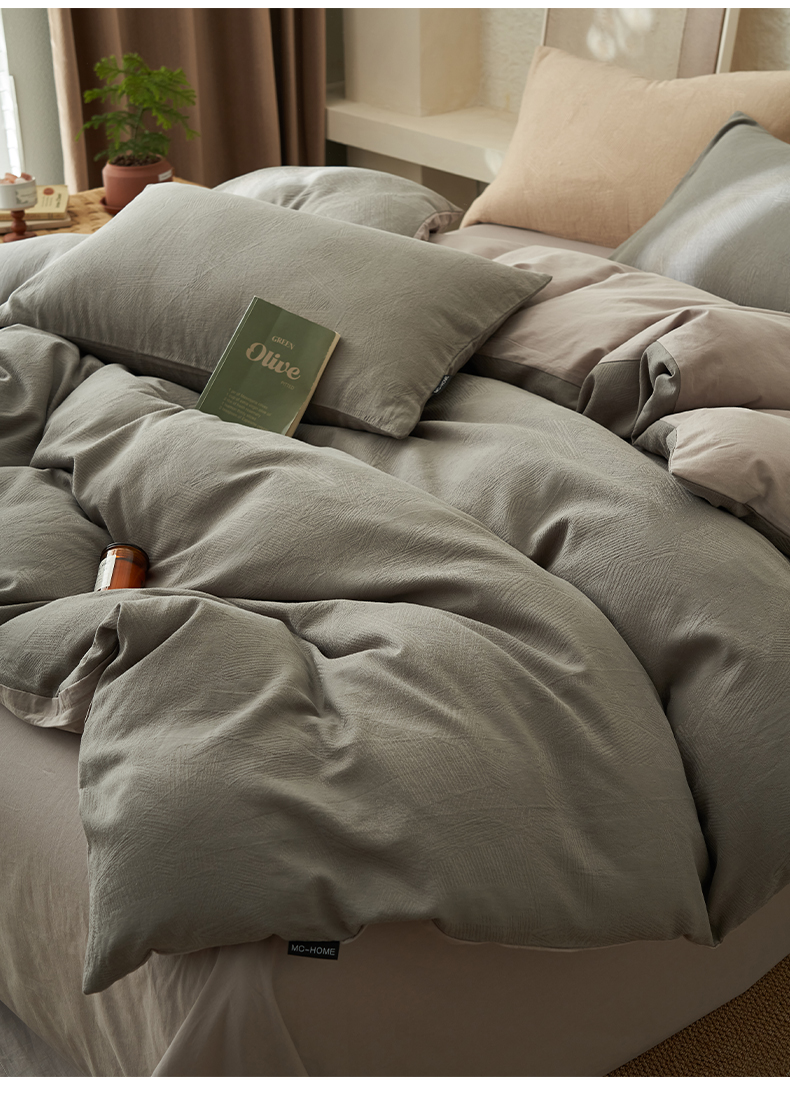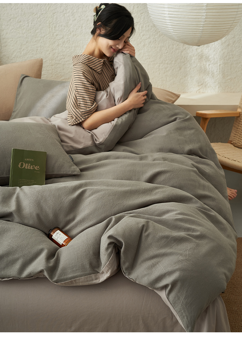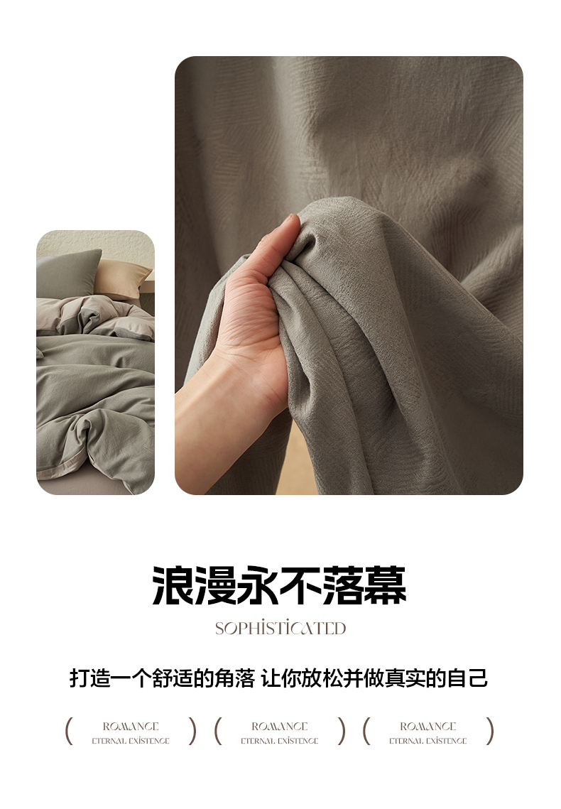 商品名称:2025新款纯棉水洗棉三层肌理纹提花四件套 肌理纹四件套-浅灰