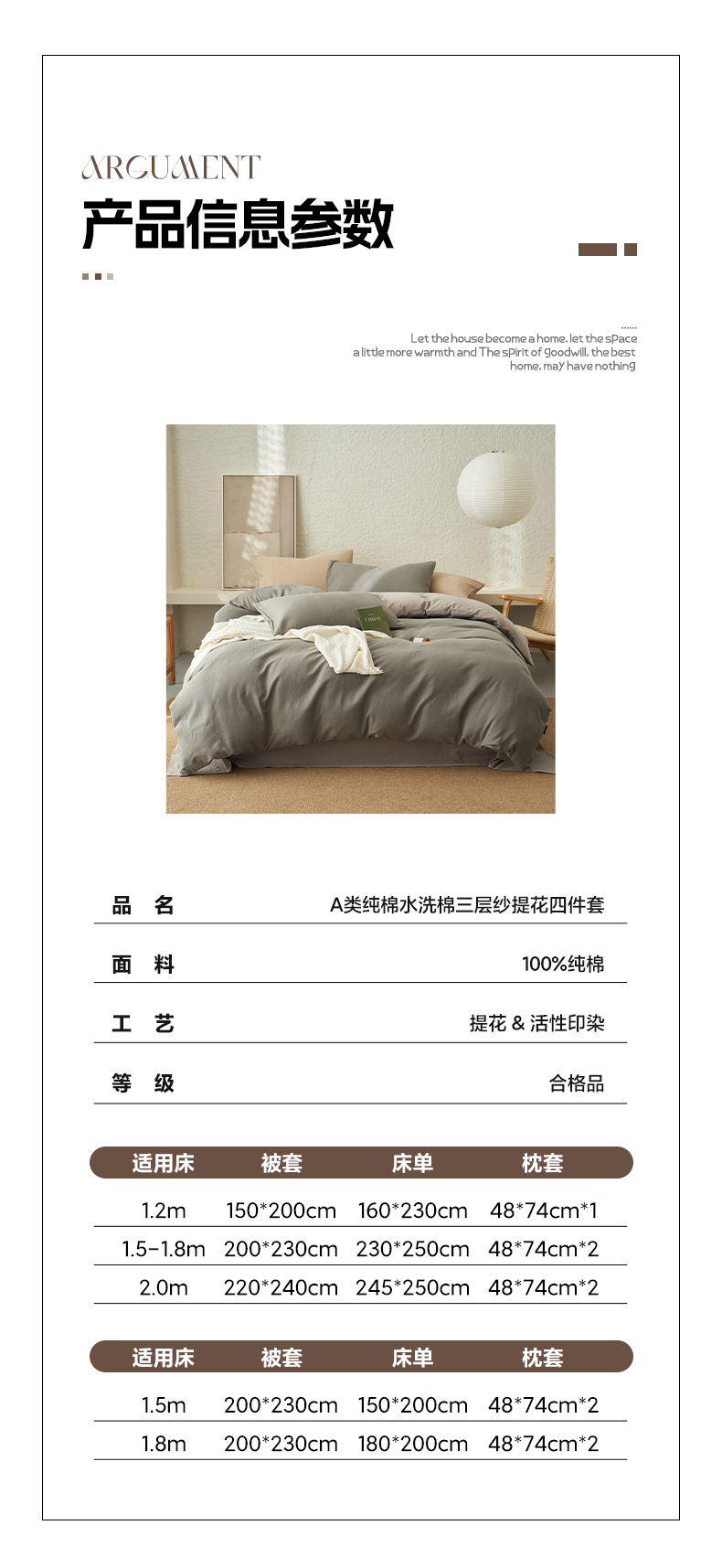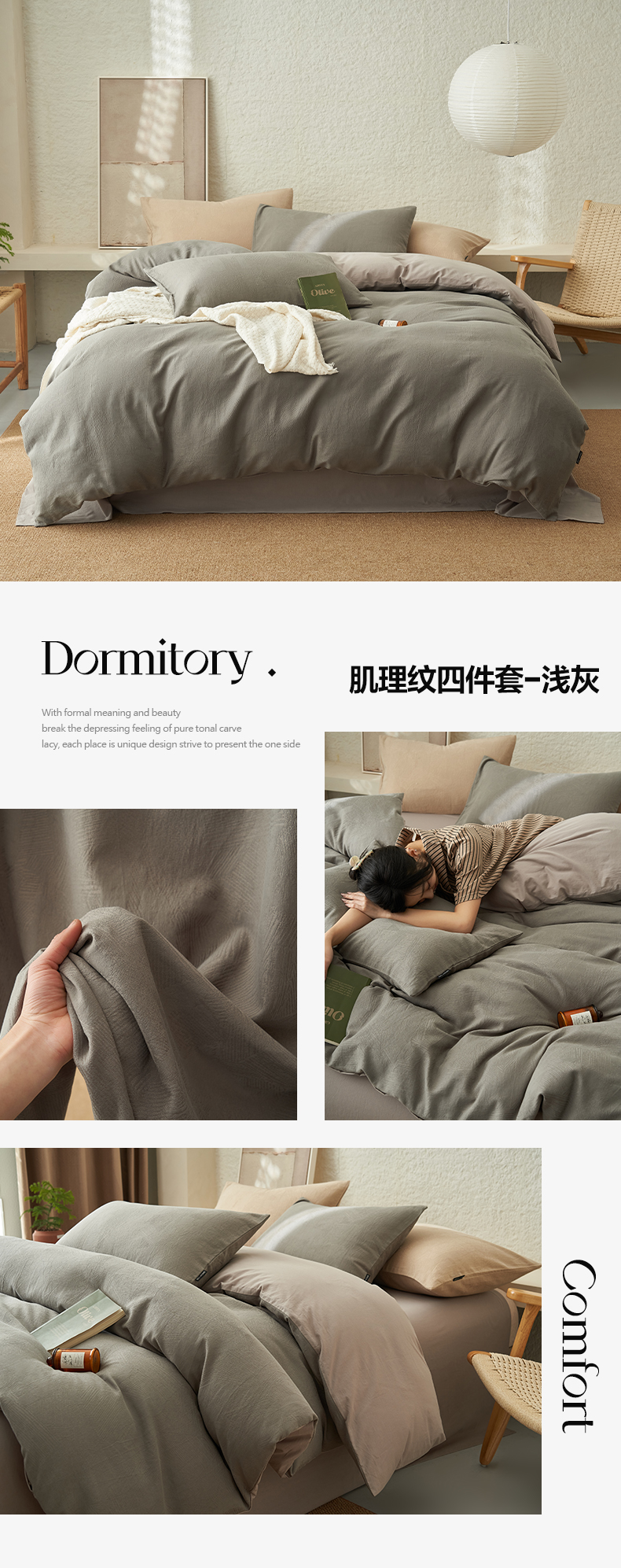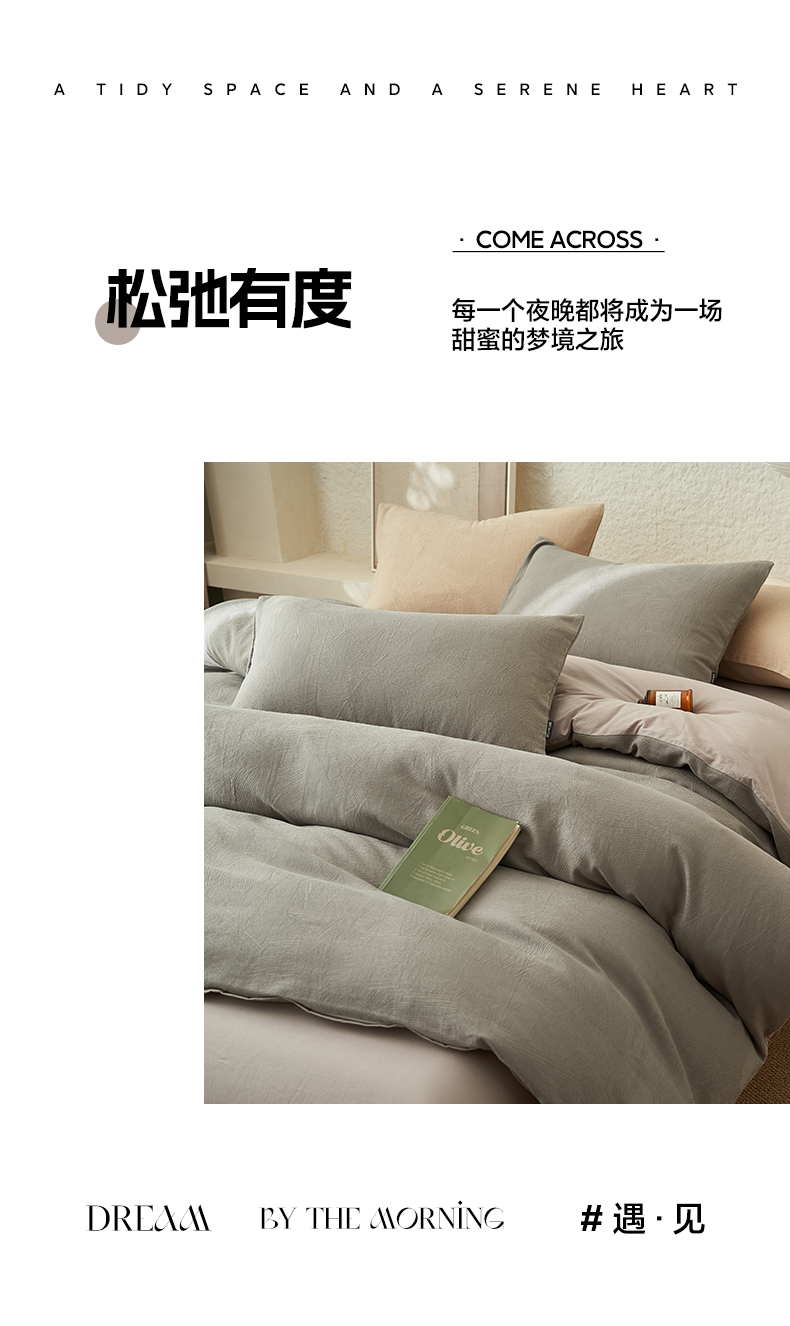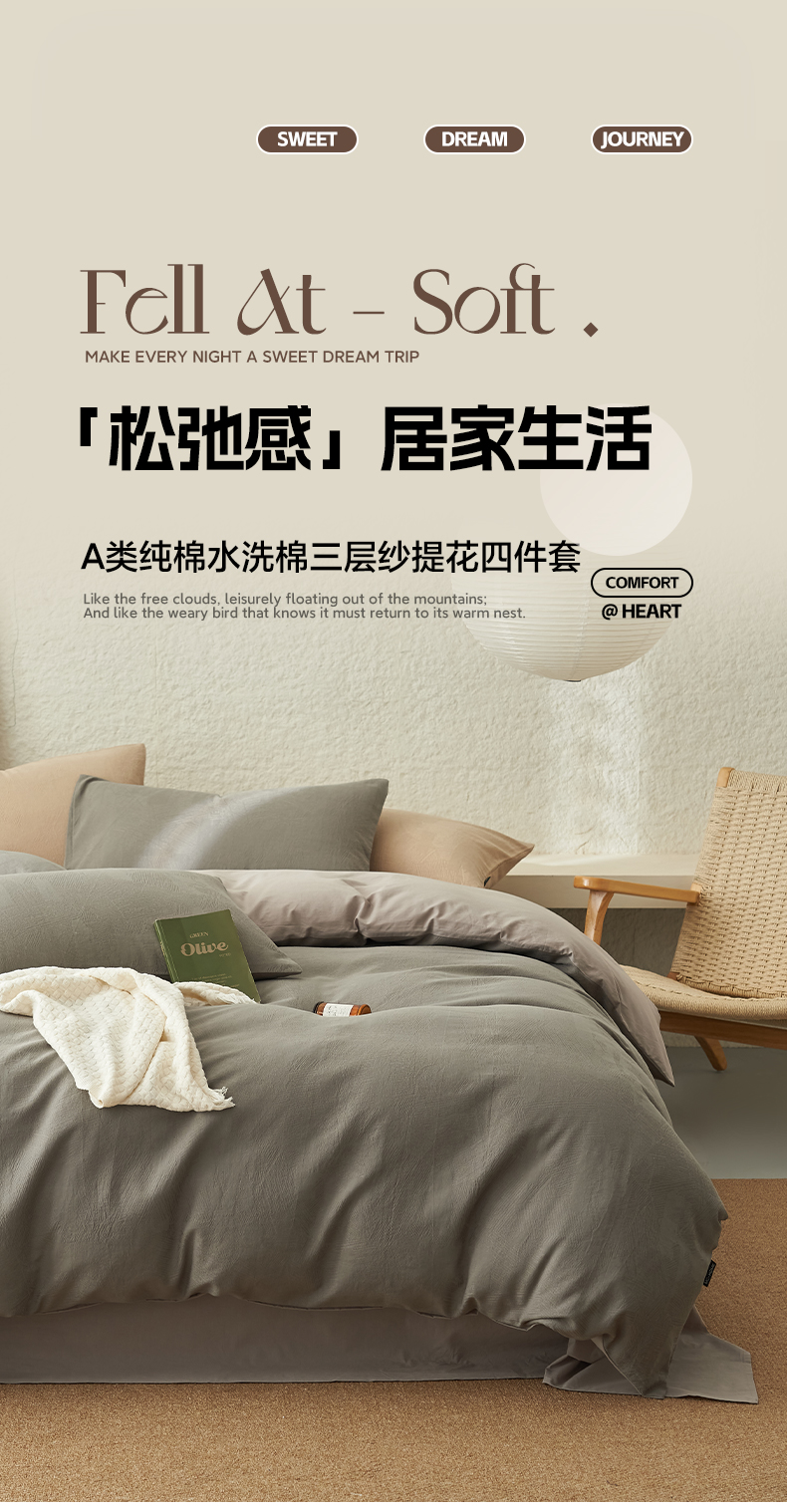 商品名称:2025新款纯棉水洗棉三层肌理纹提花四件套 肌理纹四件套-浅灰