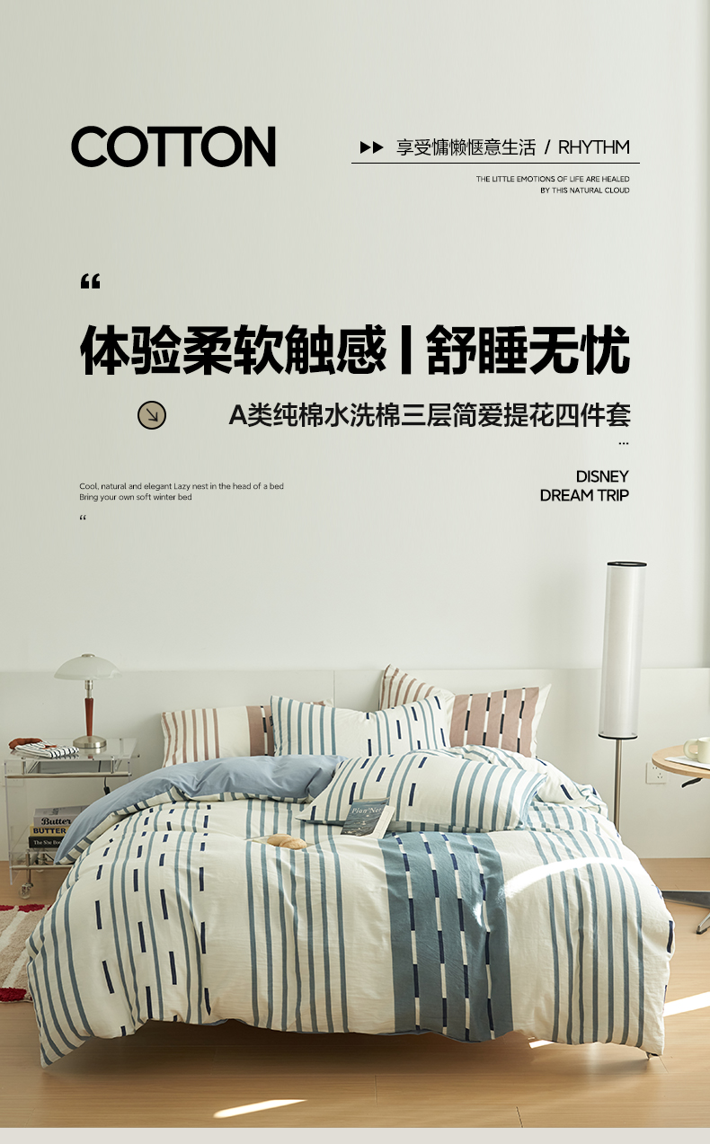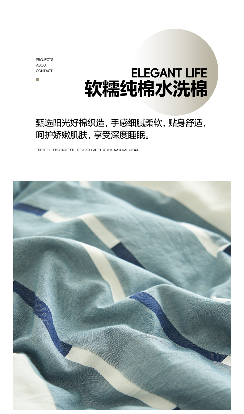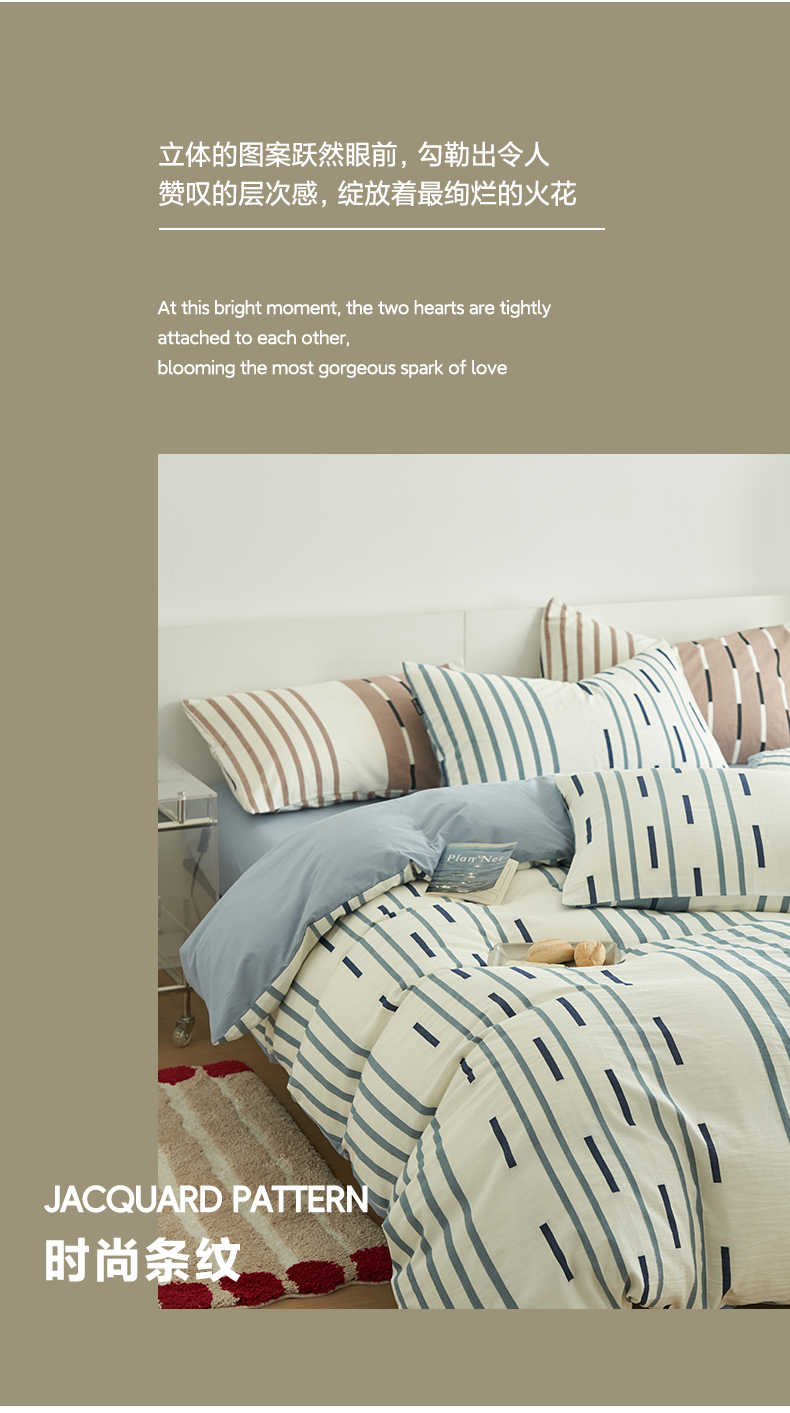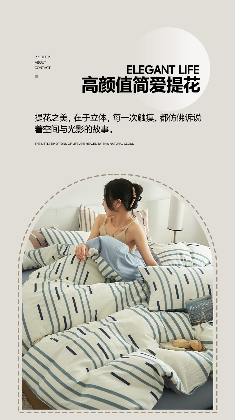 商品名称:2025新款纯棉水洗棉三层提花简爱四件套 简爱四件套-浅蓝
