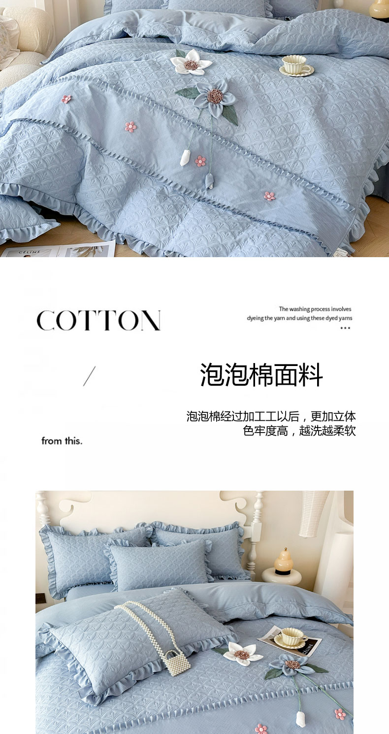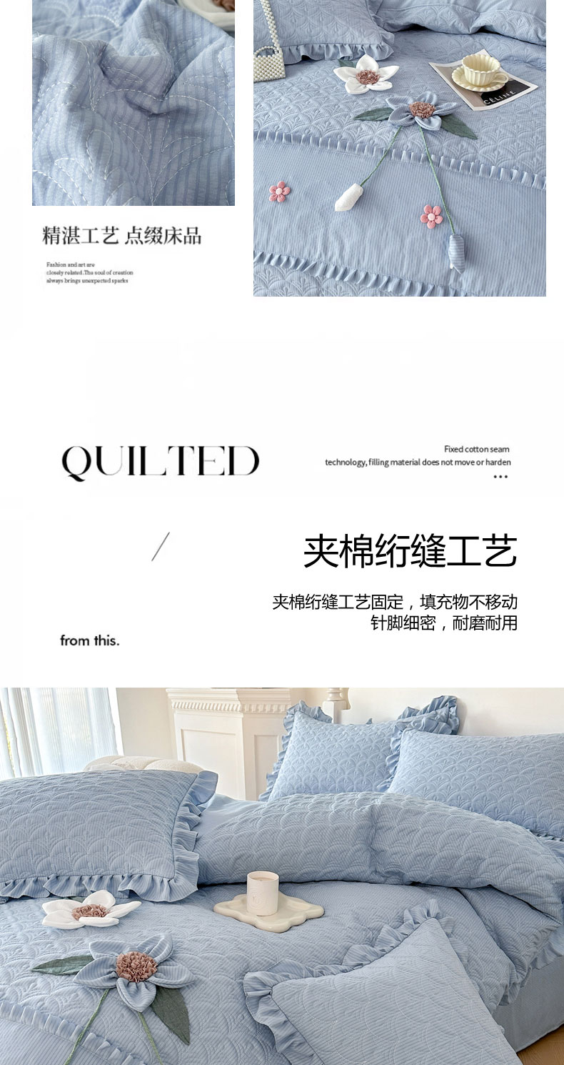 兴美佳家纺 2025新款全加棉泡泡棉亲肤绗缝四件套-爱的家园 爱的家园-浅兰
