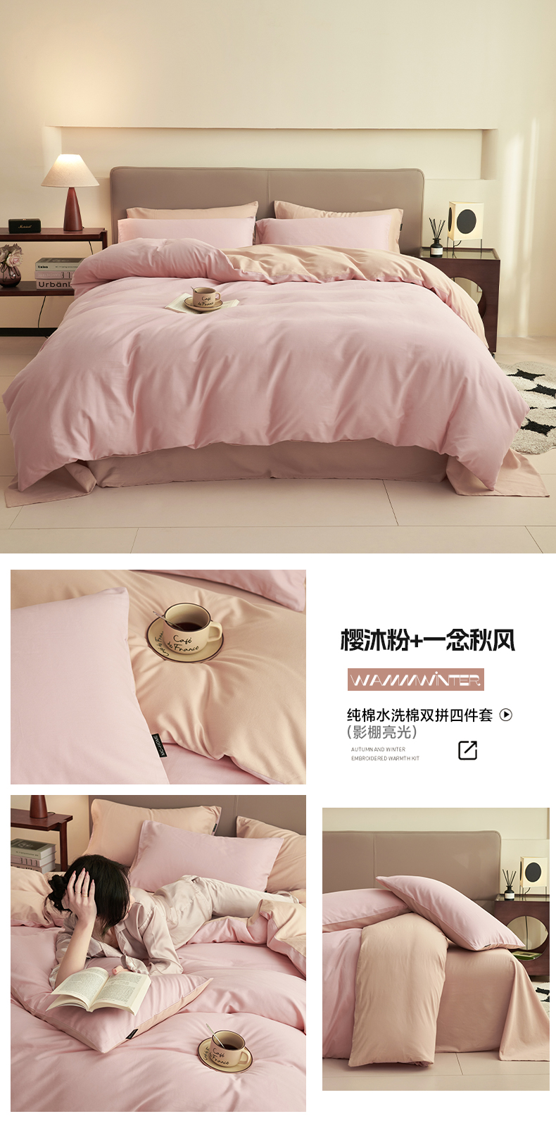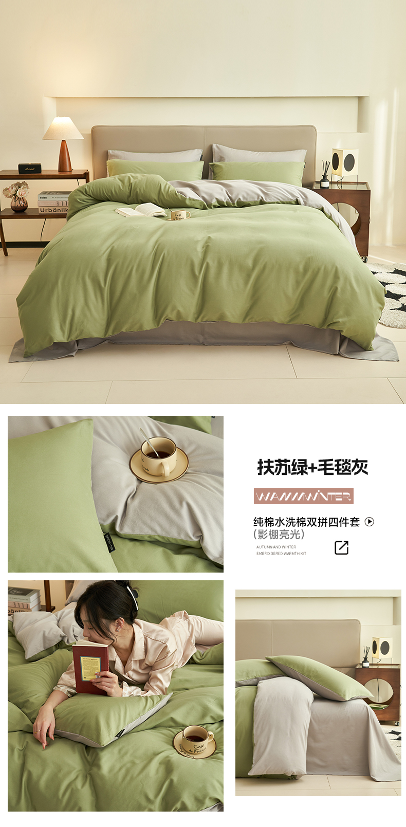(总)2025新款全棉13372水洗棉双拼四件套(影棚暗光),天青韵白+拾柴,40暖木棕+拾柴,40驼+40暖木棕,安然蓝+毛毯灰,暗木幽香+宝藏灰,暗香紫砂+40驼,布鲁兰+拾柴,春风十里+浮生一梦,豆沙+毛毯灰,扶苏绿+毛毯灰,果绿+墨子绿,礁石灰+毛毯灰,漫雾+古巴砂,毛毯灰+宝藏灰,蘑菇黄+天青韵白,碳烤栗子+拾柴,天蓝+米黄,天青韵白+一念秋风,一叶知秋+袅袅灰,樱木粉+一念秋风