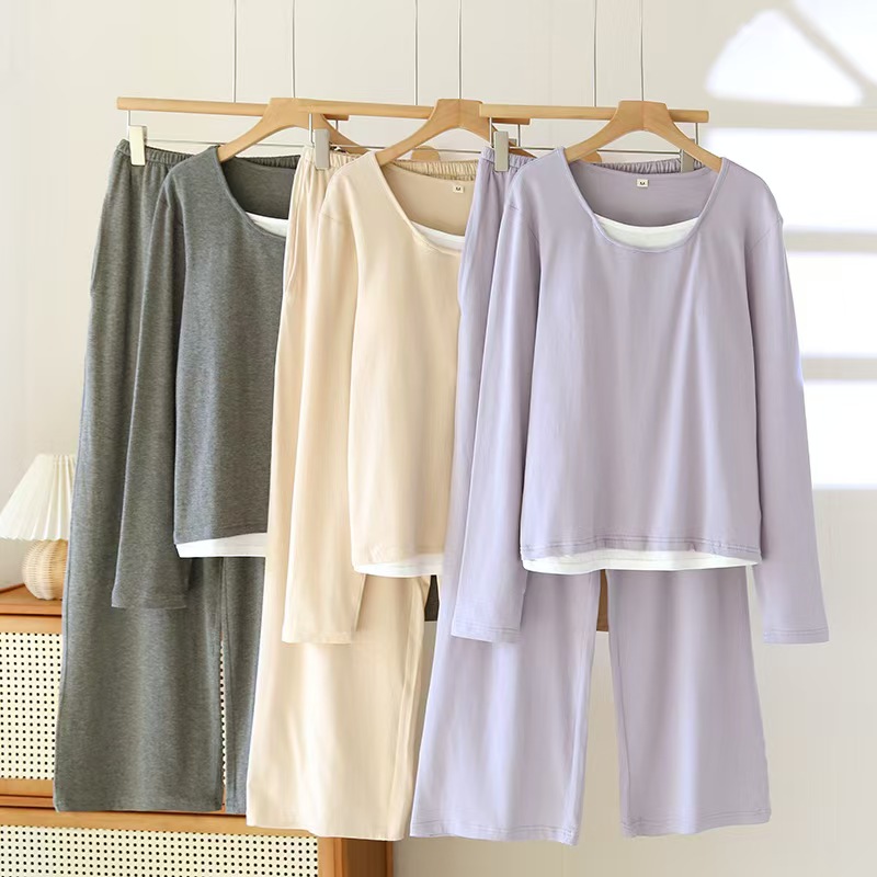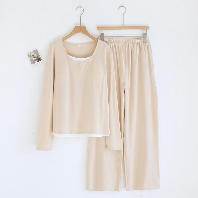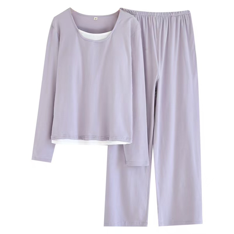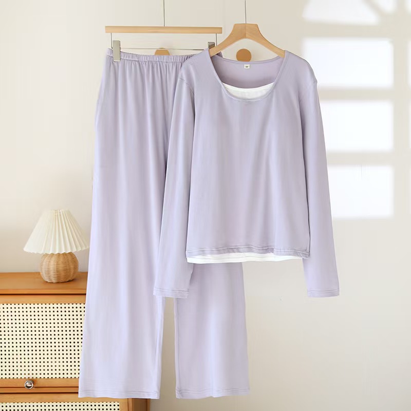 商品名称:(总)洛兰沙家居馆【只代发】【只代发】 2025新款超柔软精梳棉亲肤款睡衣女款带胸垫家居服春秋长袖长裤大码家居服套装
