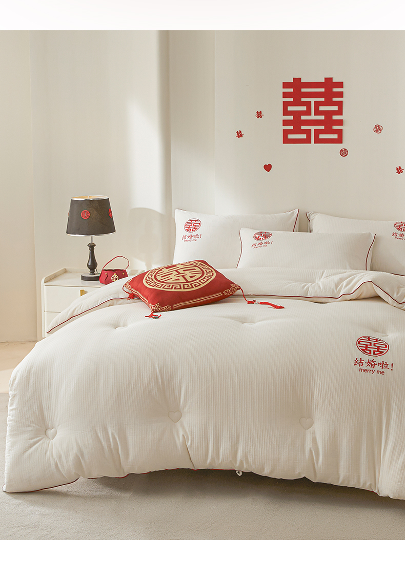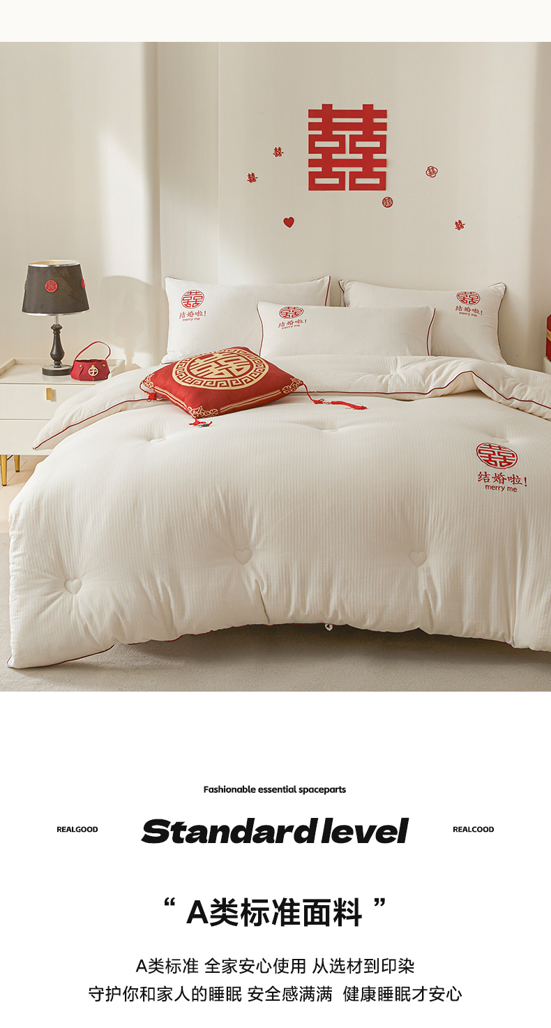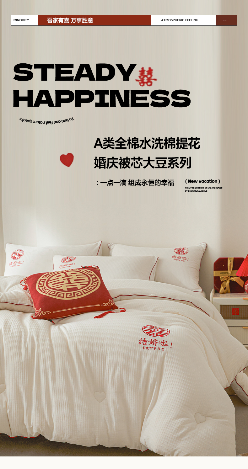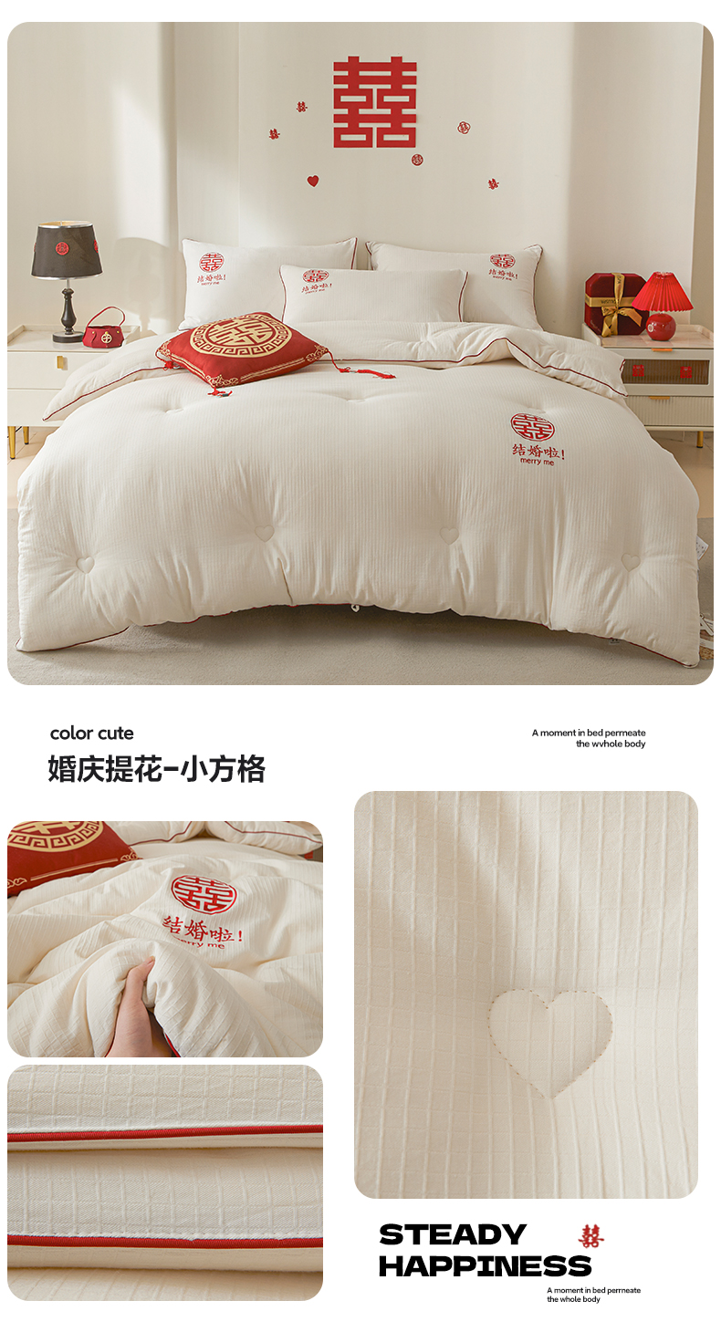 莱登卡奴 2025新款A类全棉水洗棉提花婚庆被芯55%大豆被系列-单被 婚庆提花-小方格