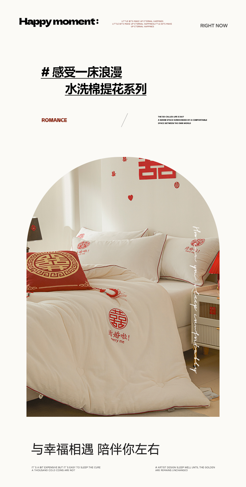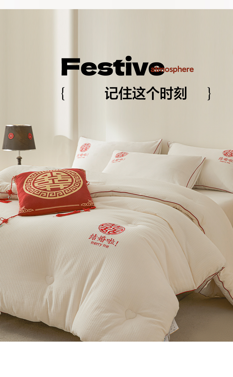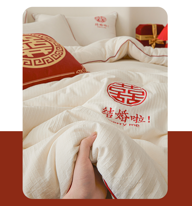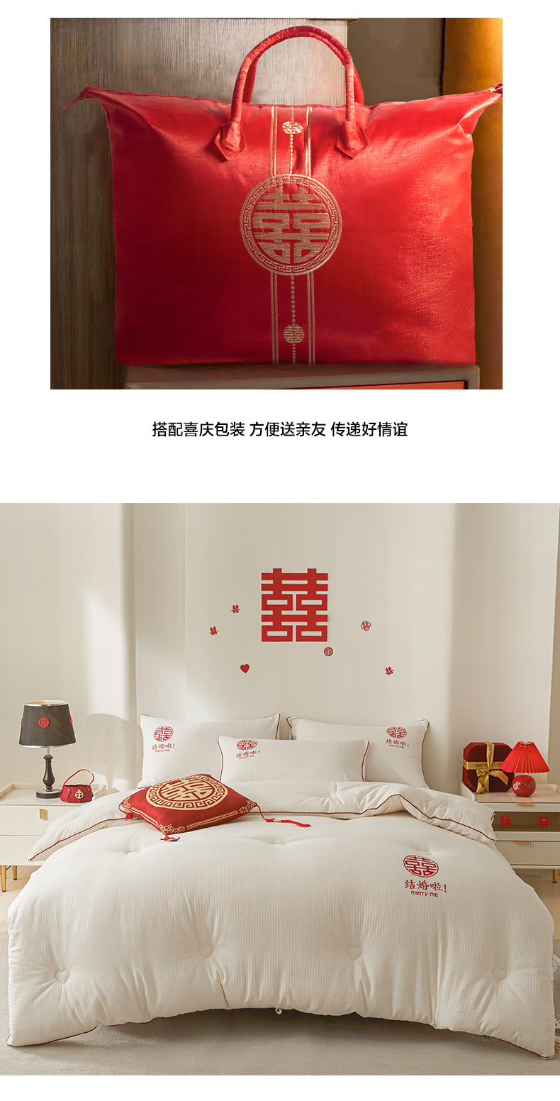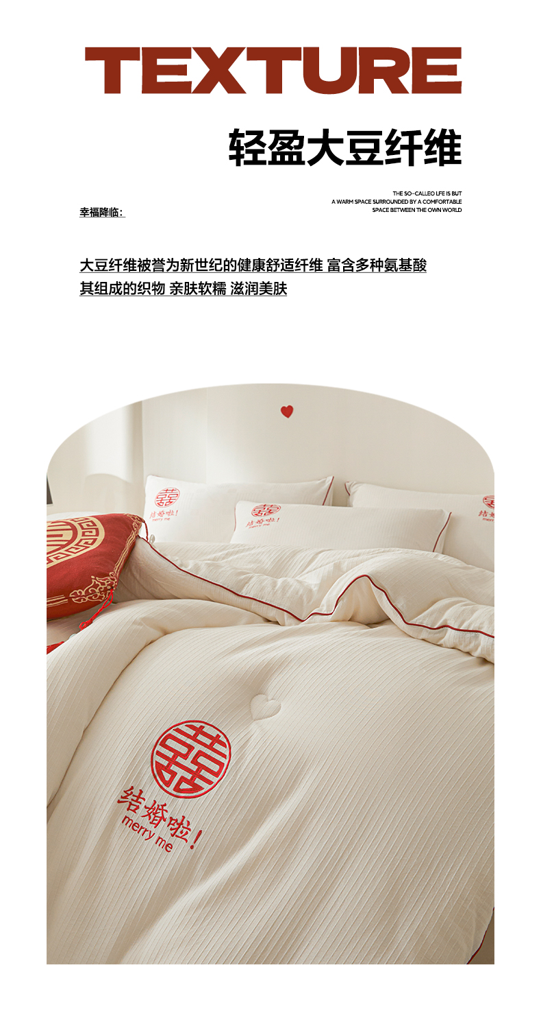 莱登卡奴 2025新款A类全棉水洗棉提花婚庆被芯55%大豆被系列-单被 婚庆提花-小方格