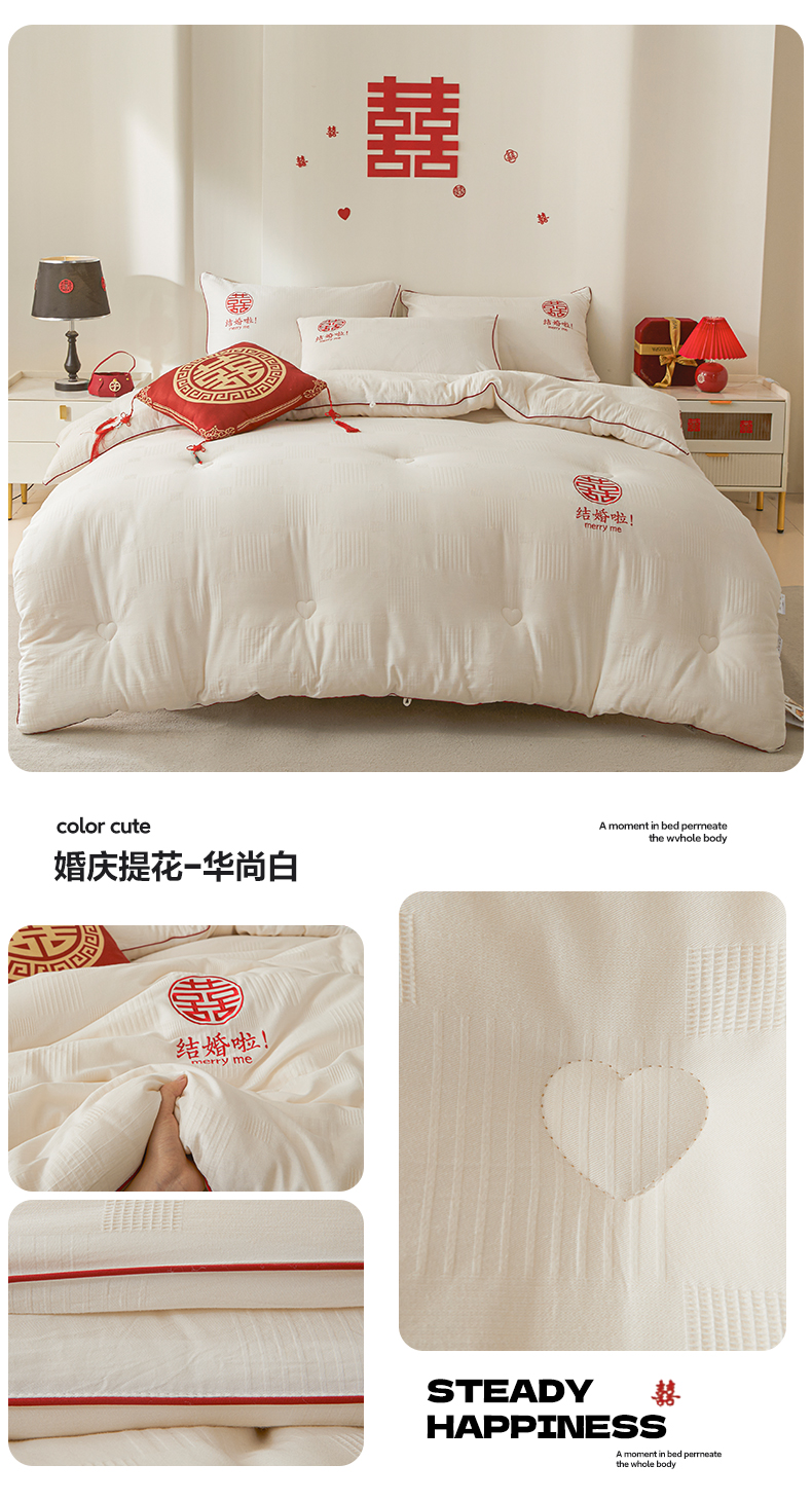 • 91家纺网 家纺一手货源 找家纺 莱登卡奴 2025新款A类全棉水洗棉提花婚庆被芯55%大豆被系列-单被 婚庆提花-小方格