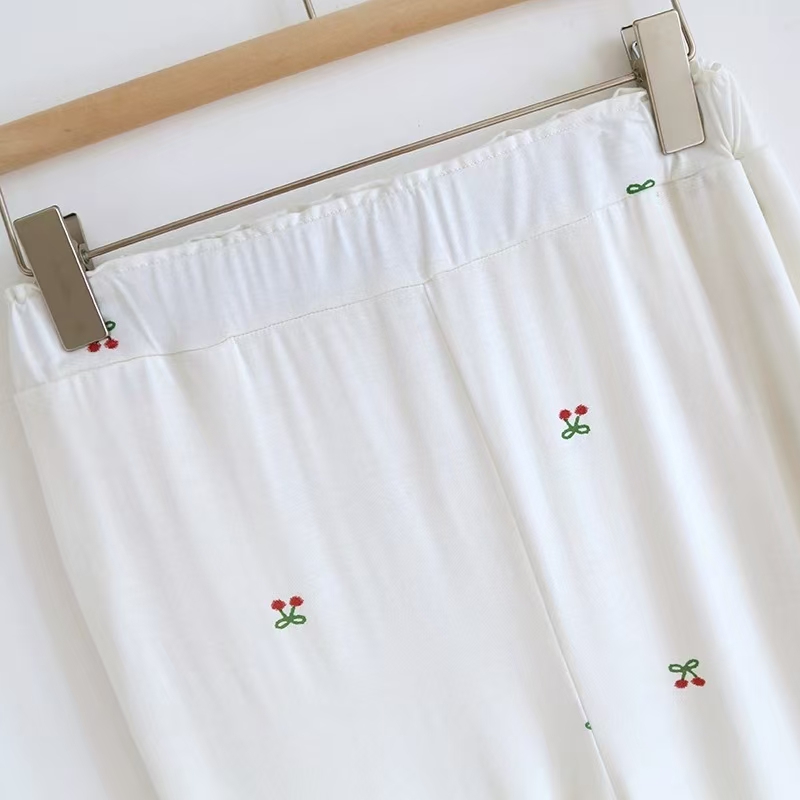 商品名称:洛兰沙家居馆【只代发】【只代发】2025新款外贸欧美风淑女风莫代尔睡衣女春夏秋开衫短袖吊带三件套长裤家居服 三件套白色