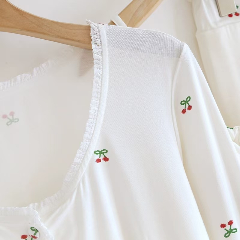 (总)洛兰沙家居馆 2025新款全棉大提花双层纱女士家居服睡衣长袖长裤套装色织翻领款四季可穿,粉色小草莓-长袖长裤套装,红色小美好-长袖长裤套装,蓝月亮-长袖长裤套装,绿花朵-长袖长裤套装,樱桃蝴蝶结-长袖长裤套装,紫色郁金香-长袖长裤套装,组合图仅供展示不可下单