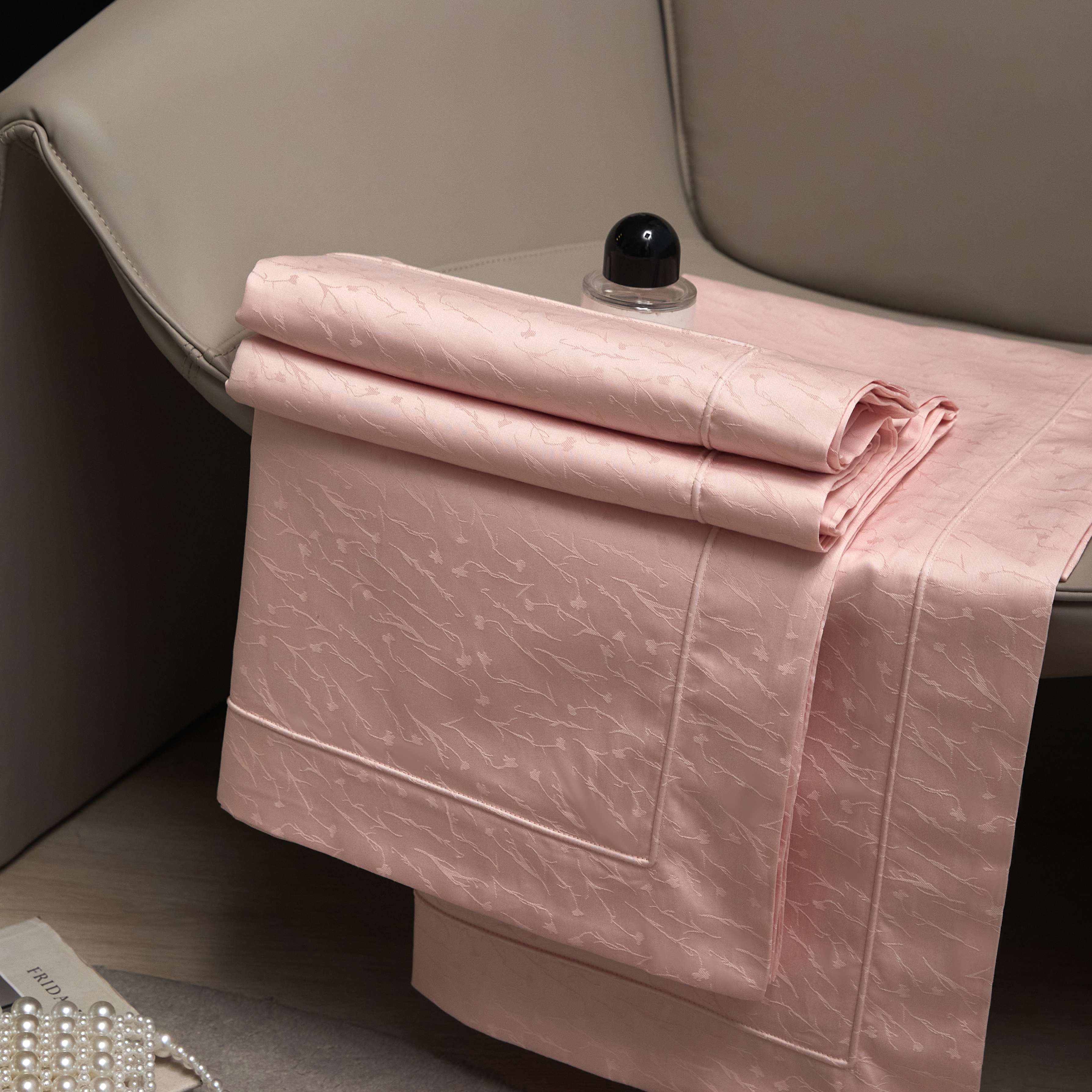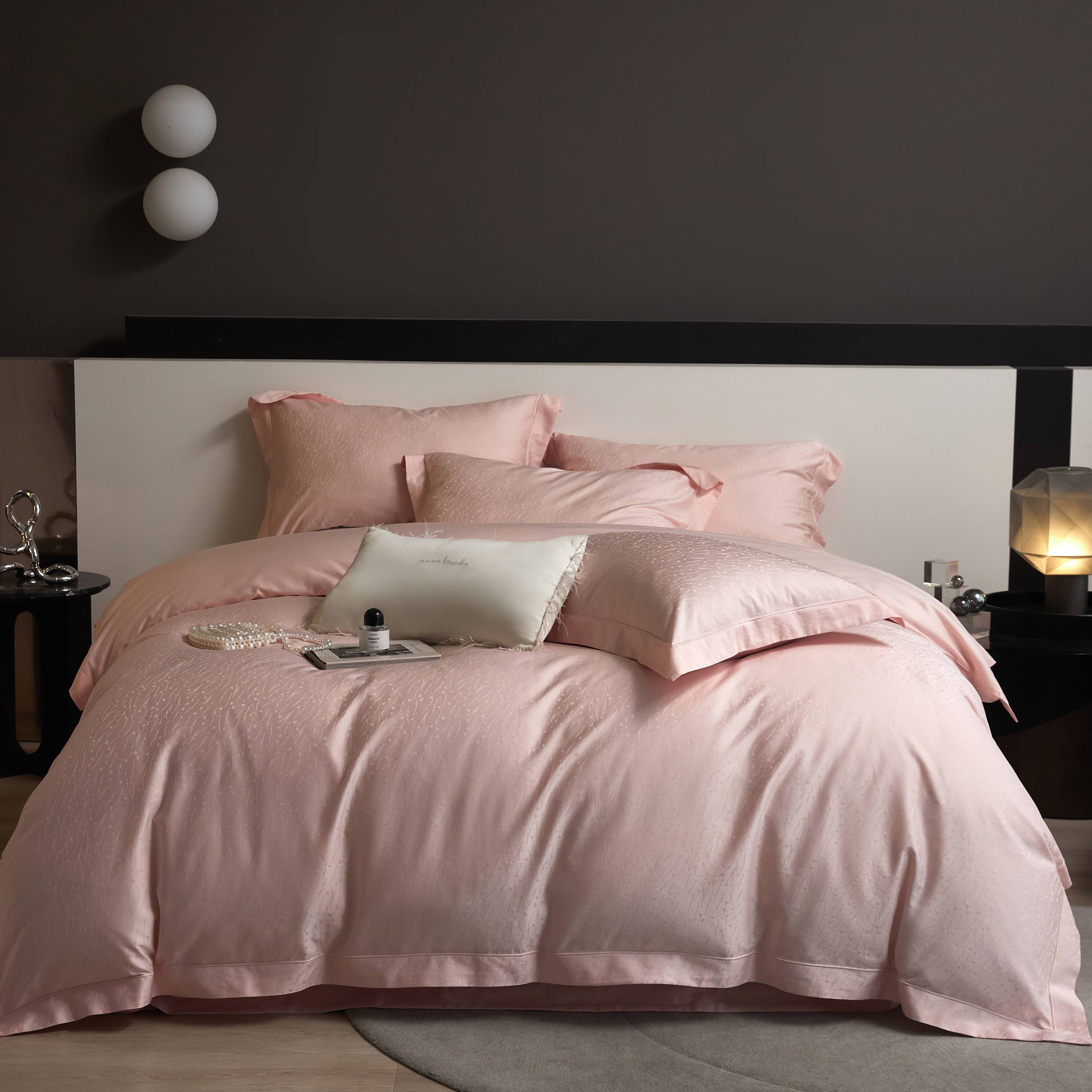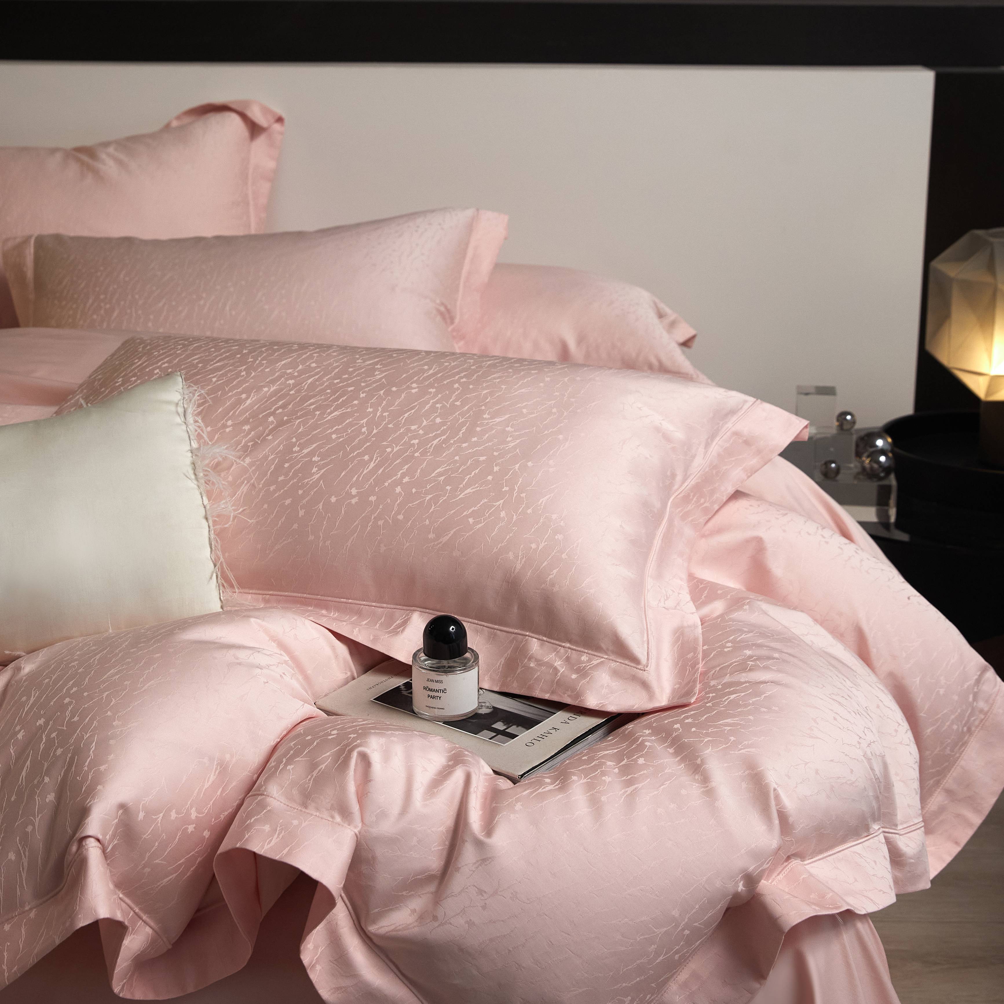 榻尚家居 2025春夏新款长绒棉全棉纯棉贡缎提花手工立体埋绳工艺四件套 艾克亚(浅粉)