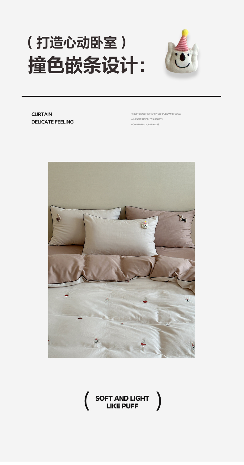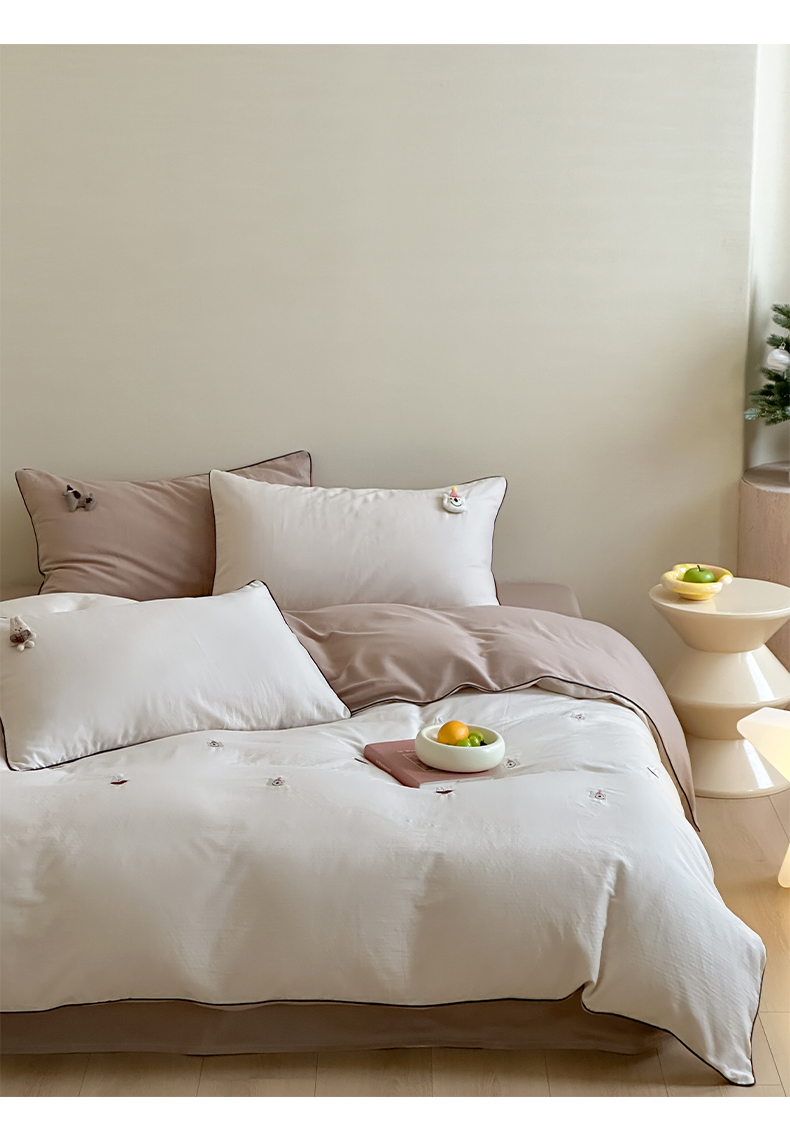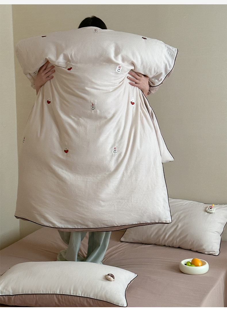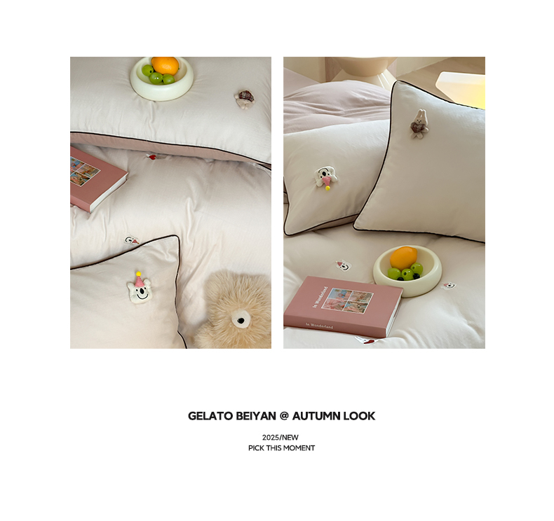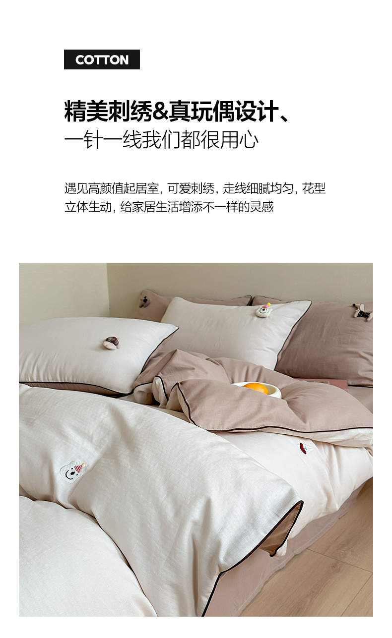 当前位置: 91家纺网 > 商品网购 > 床品套件 > 四件套 > 其它四件套 > 卡巴伦家纺 2025双层纱-A类玩偶刺绣嵌条款四件套 奶泡小熊