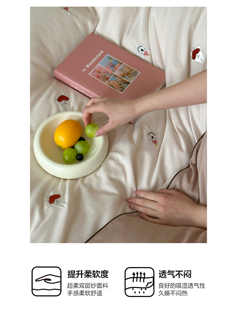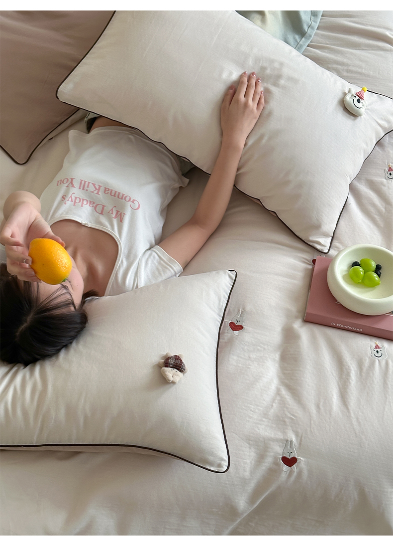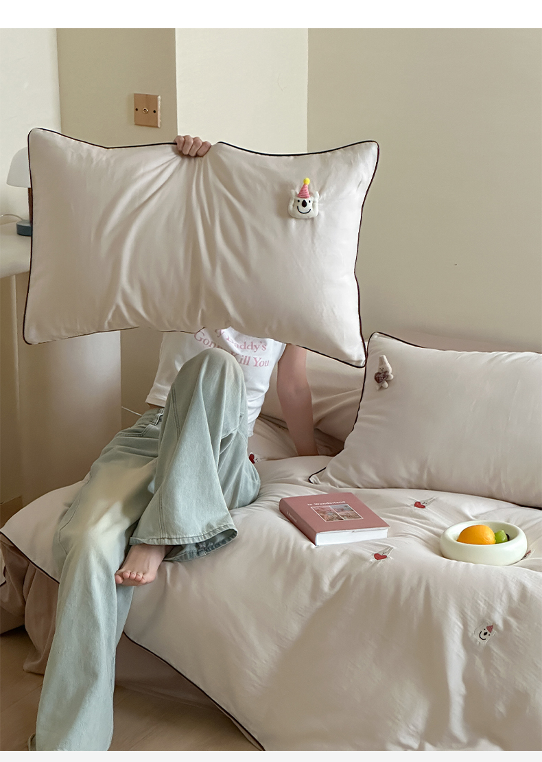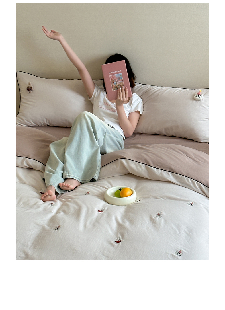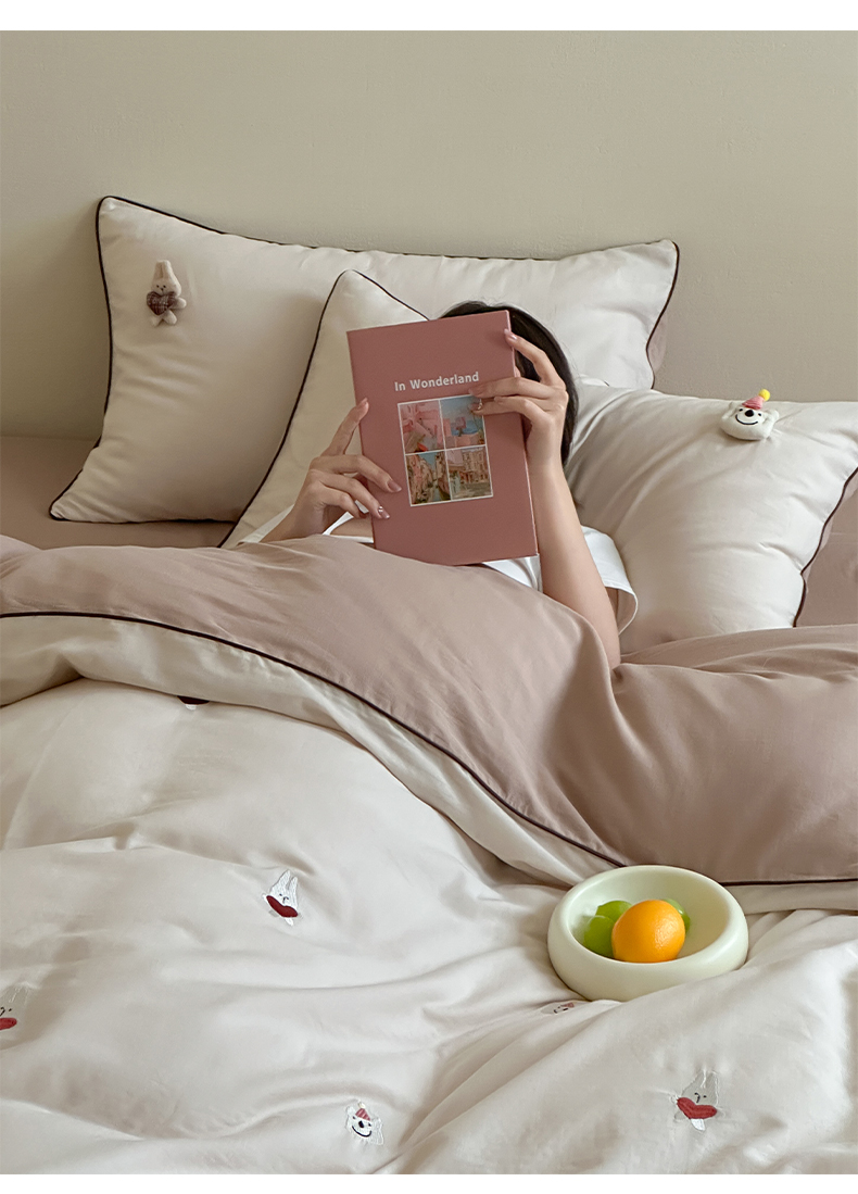 当前位置: 91家纺网 > 商品网购 > 床品套件 > 四件套 > 其它四件套 > 卡巴伦家纺 2025双层纱-A类玩偶刺绣嵌条款四件套 奶泡小熊