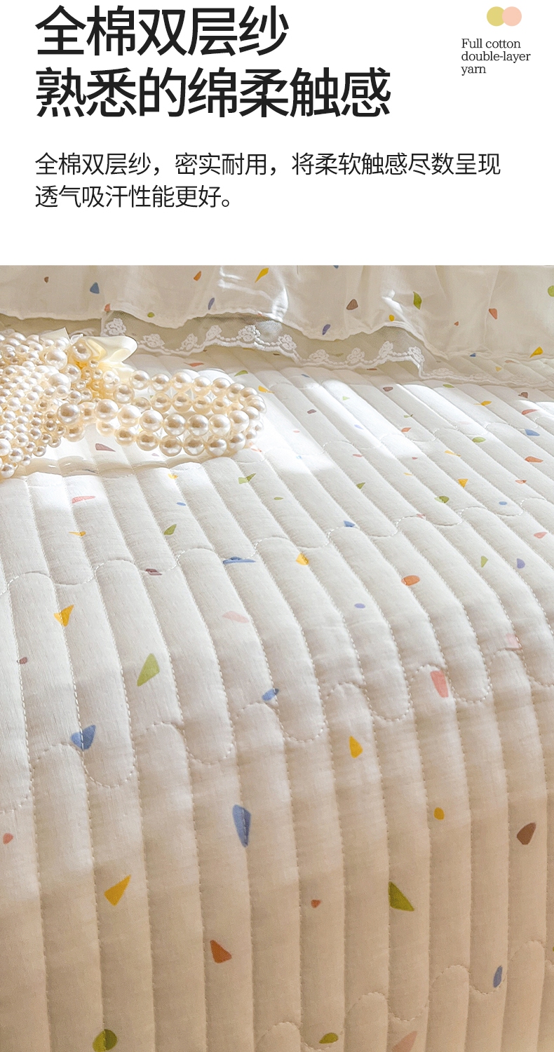 商品名称:麒豆豆 2025新款全棉印花双层纱床盖 彩虹糖