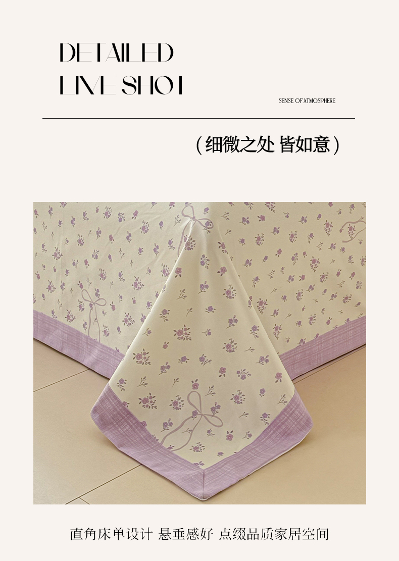 当前位置: 91家纺网 > 商品网购 > 床上用品 > 床单 > 蓝邻家纺 2025新款100%新疆原棉粗布小清新拼角工艺款系列单床单 紫茉