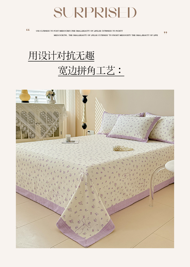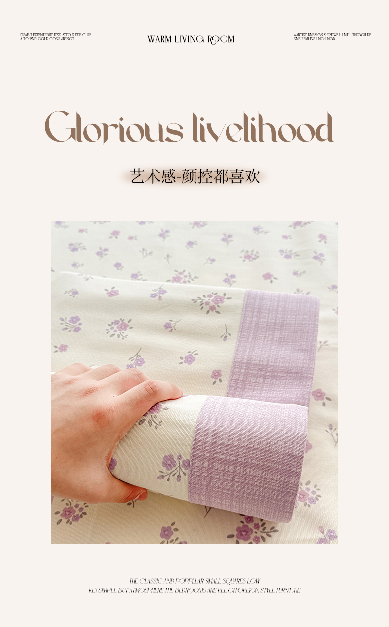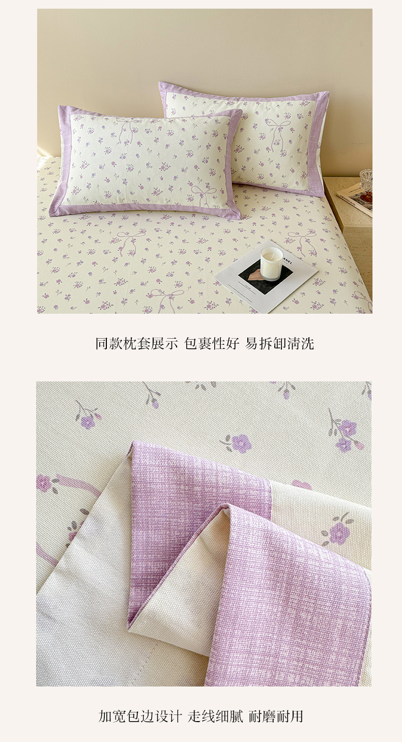 • 91家纺网 家纺一手货源 找家纺 蓝邻家纺 2025新款100%新疆原棉粗布小清新拼角工艺款系列单床单 紫茉