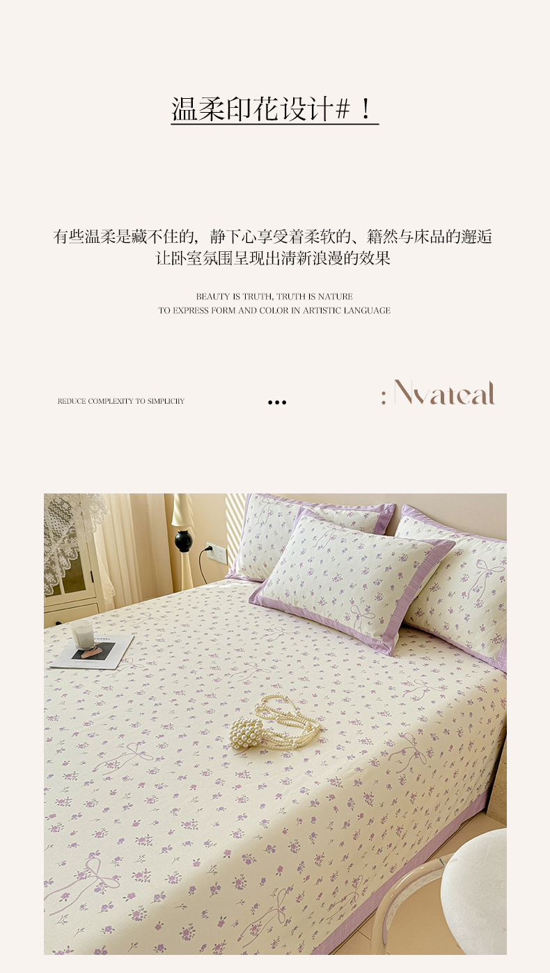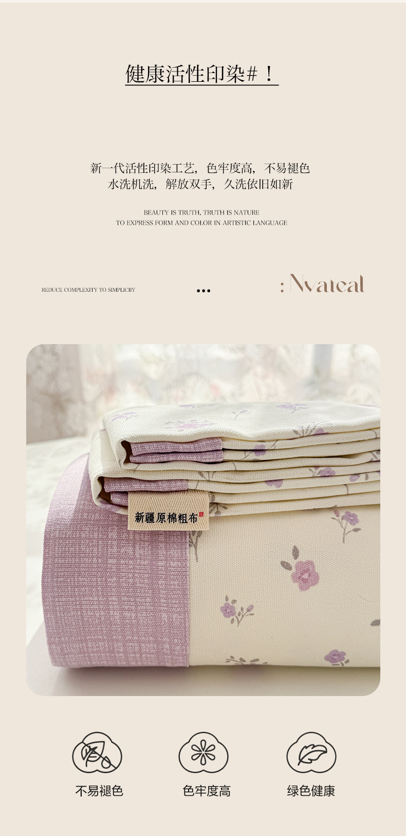 蓝邻家纺 2025新款100%新疆原棉粗布小清新拼角工艺款系列单床单 紫茉
