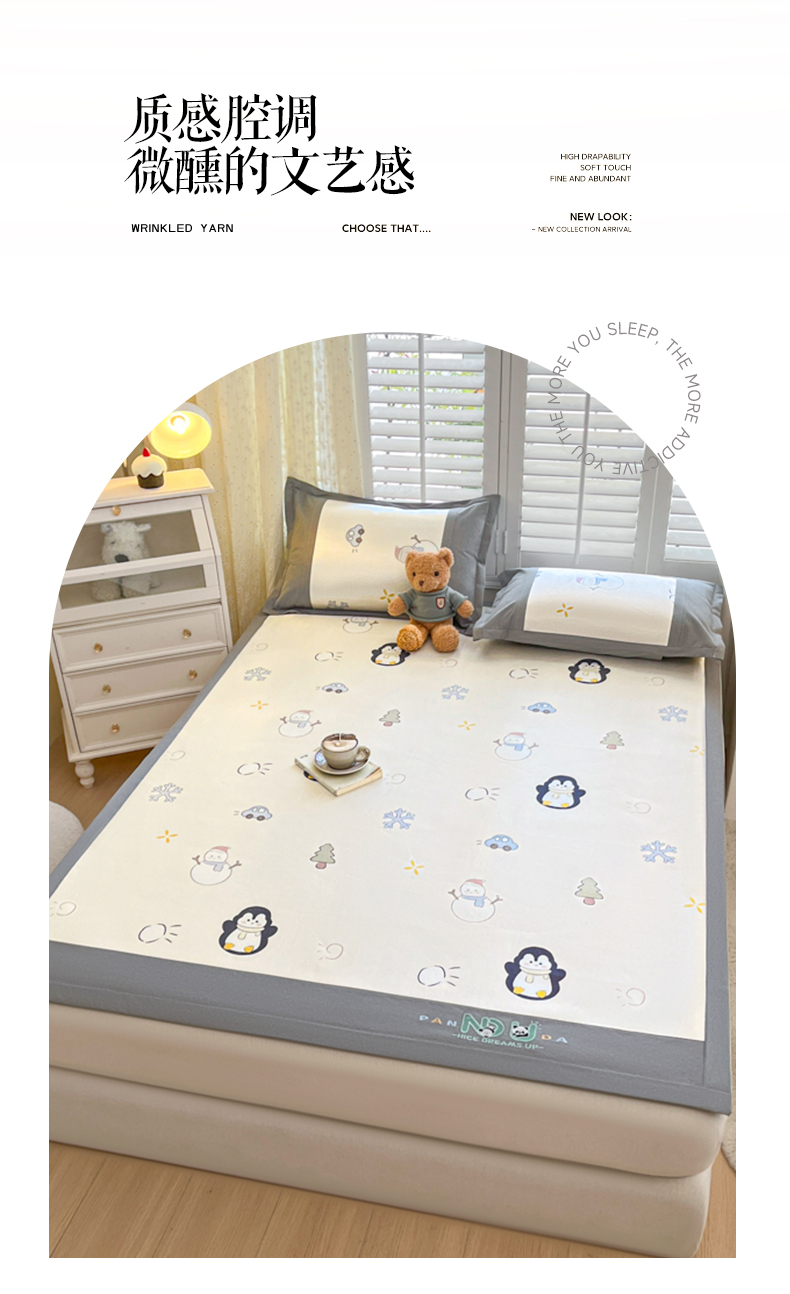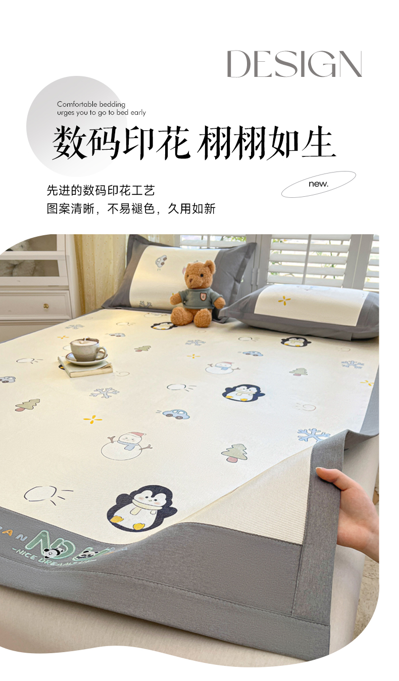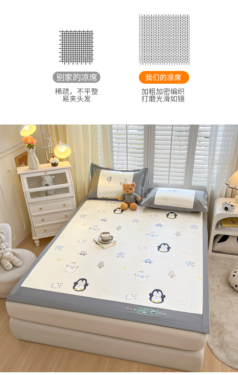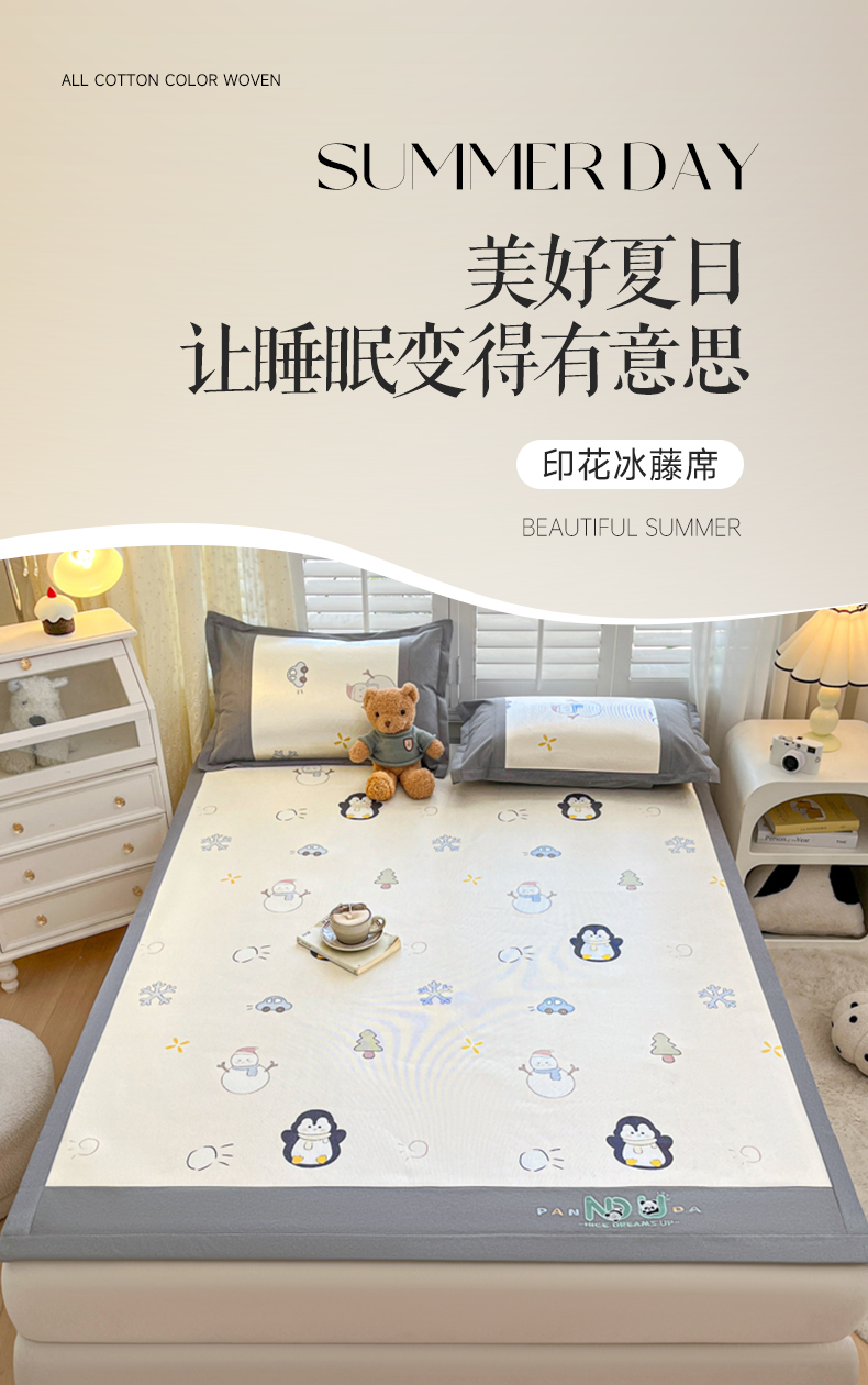 航途席业 2025新款印花冰藤席-成人款 小企鹅