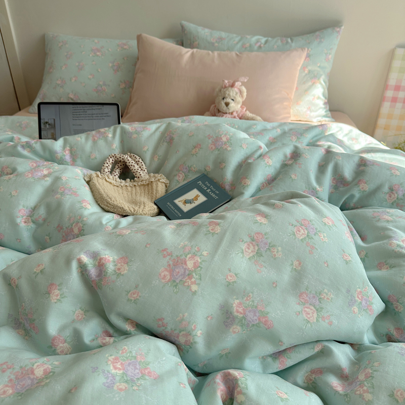 桃喜 2025新款春夏全棉双层纱碎花系列四件套 星空蓝