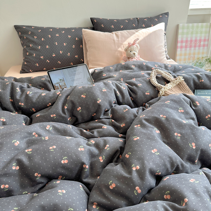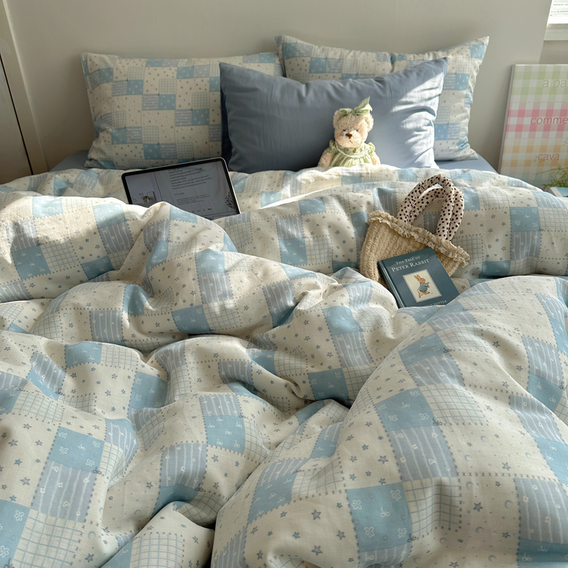 商品名称:桃喜 2025新款春夏全棉双层纱碎花系列四件套 星空蓝