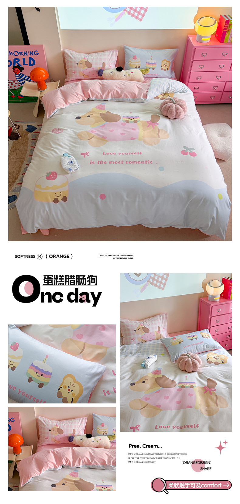 美乐迪家纺 2025新款大版全棉四件套 蛋糕腊肠狗