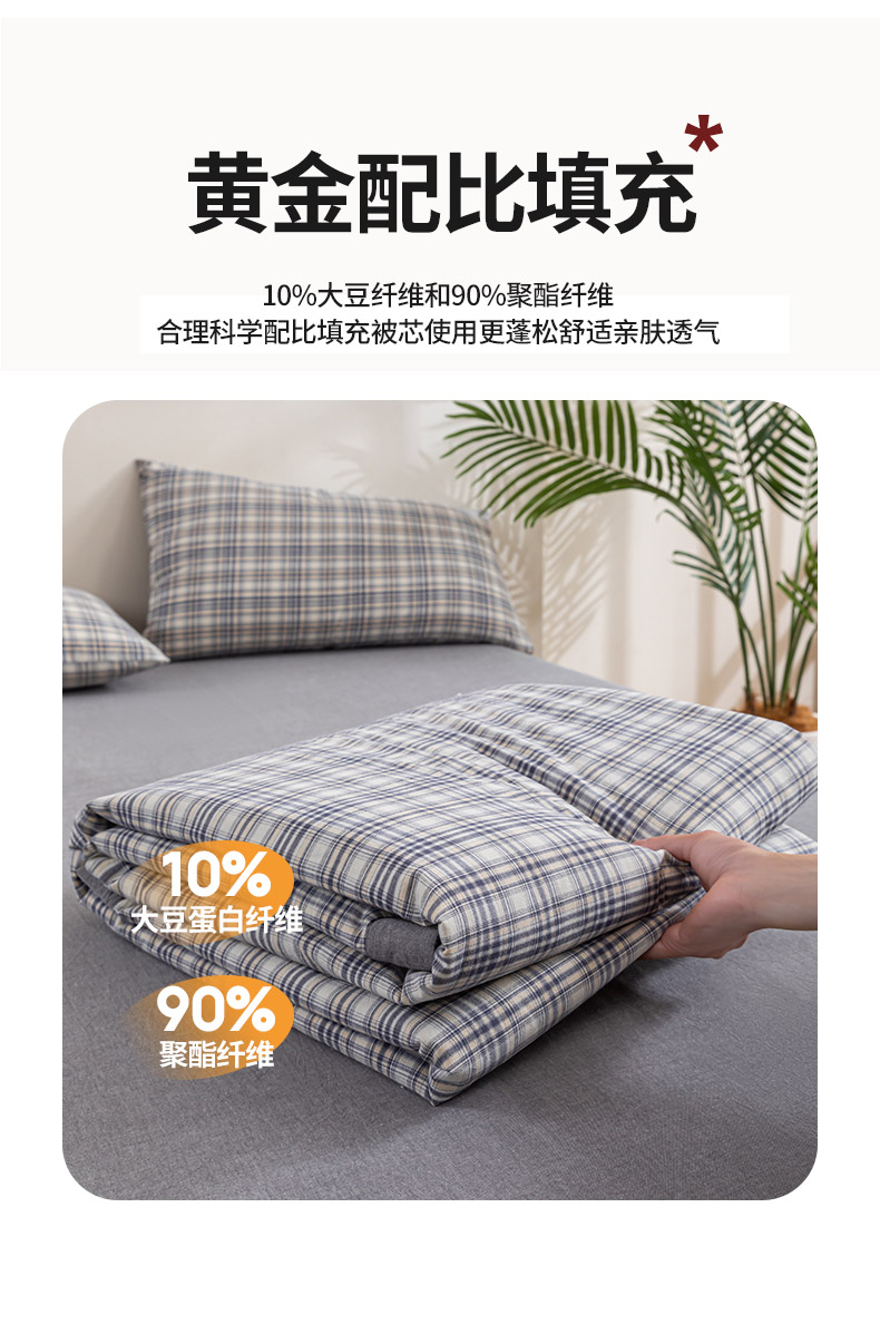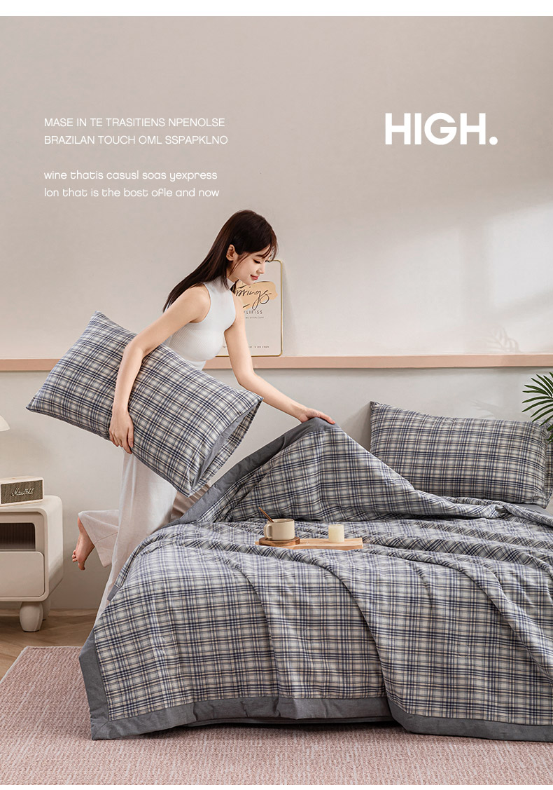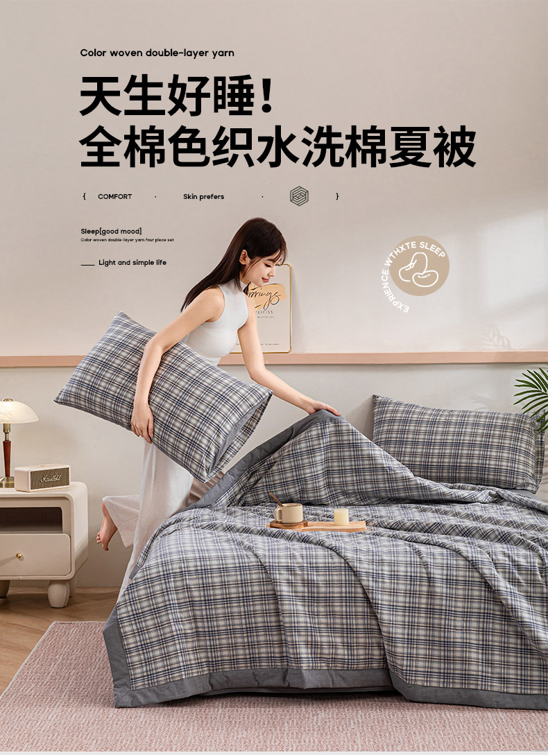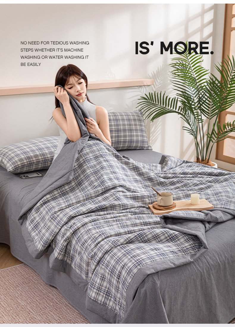 商品名称:吾诺 2025 全棉色织水洗棉夏被大豆夏被四件套被子被芯空调被夏凉被 细灰格