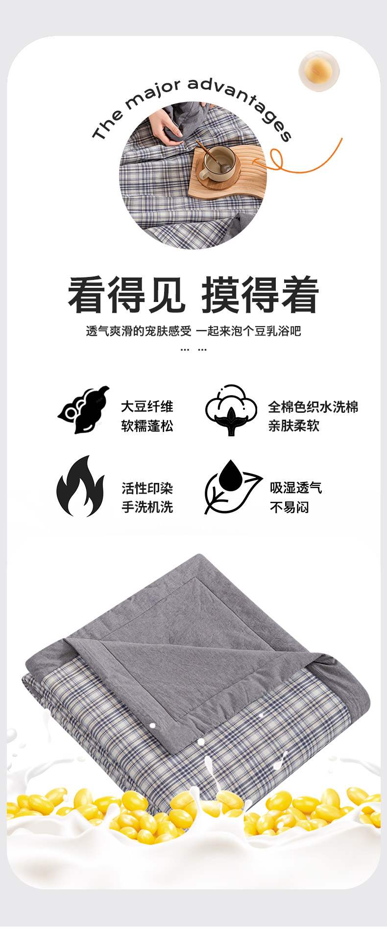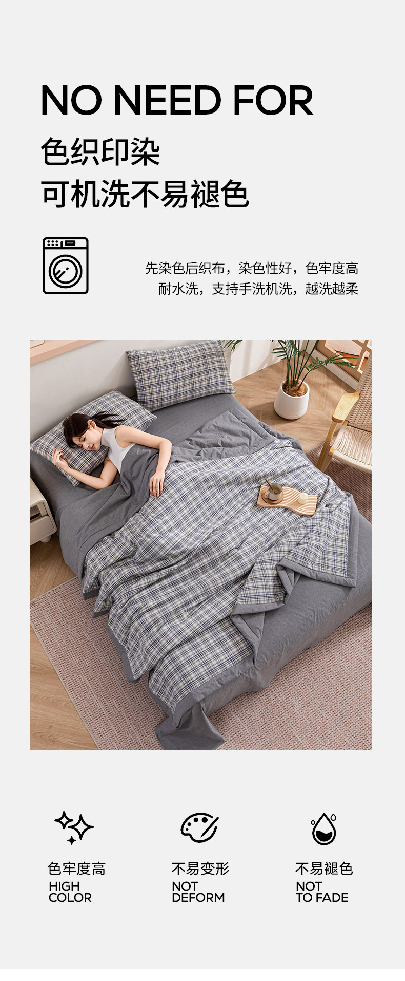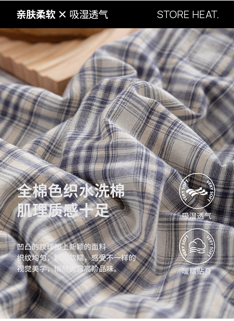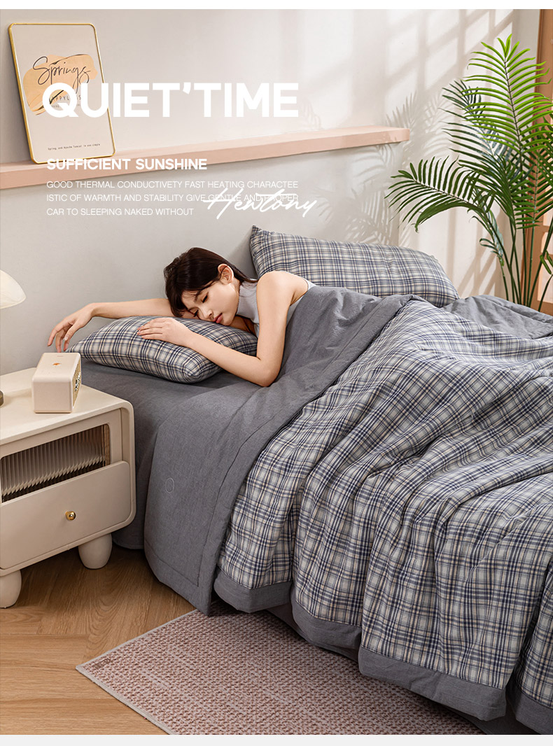 商品名称:吾诺 2025 全棉色织水洗棉夏被大豆夏被四件套被子被芯空调被夏凉被 细灰格